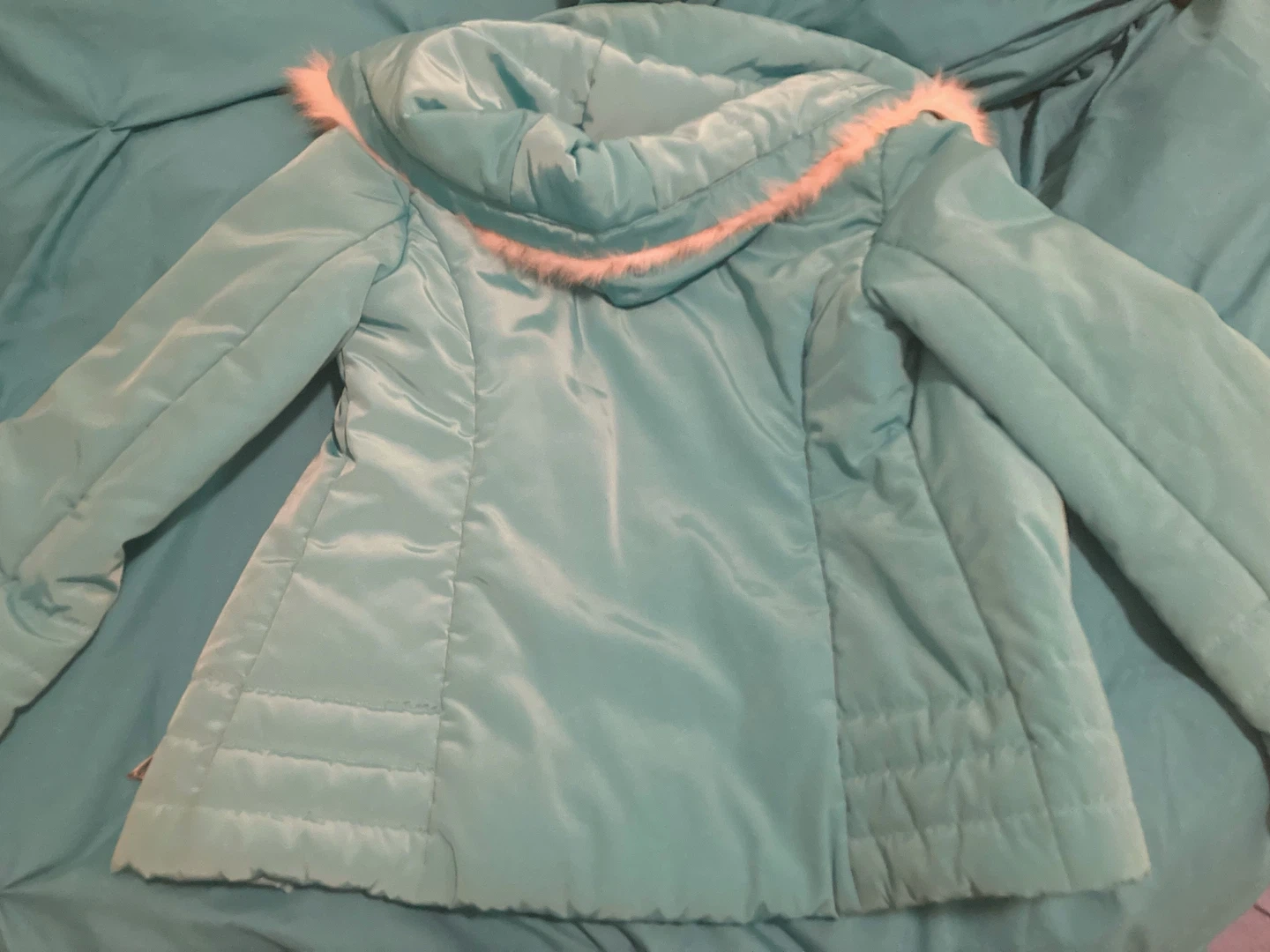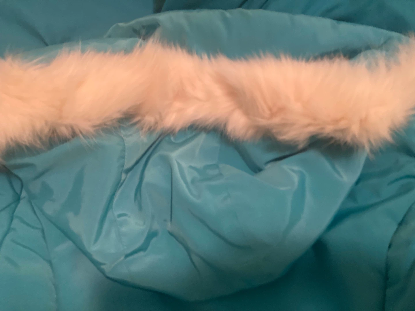Michel Klein is a French designer from Paris. The brand offers ready-to-wear collections, accessories, and fragrances that are inspired by French fashion. It's a beautiful turquoise colour with a faux fur trim on the hood. Perfect for staying warm and stylish during the colder months! Also gloves.