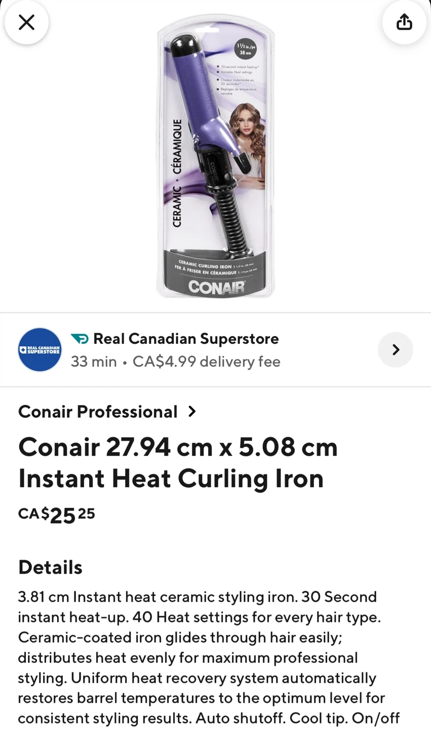 I'm selling a Conair instant heat ceramic styling curling iron. It heats up in just 30 seconds and has 40 heat settings for every hair type. It distributes heat evenly for professional styling and has a uniform heat recovery system to maintain the optimum barrel temperature. Originally bought for $25+ now selling for $5 only! Works fine, barely used