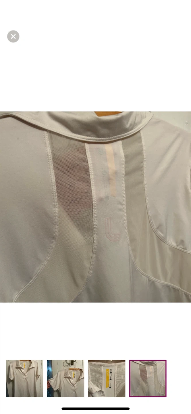 Lole brand. Short sleeve collard polo top. Mesh panels in the back. White in colour. Size women’s xl. Brand new condition