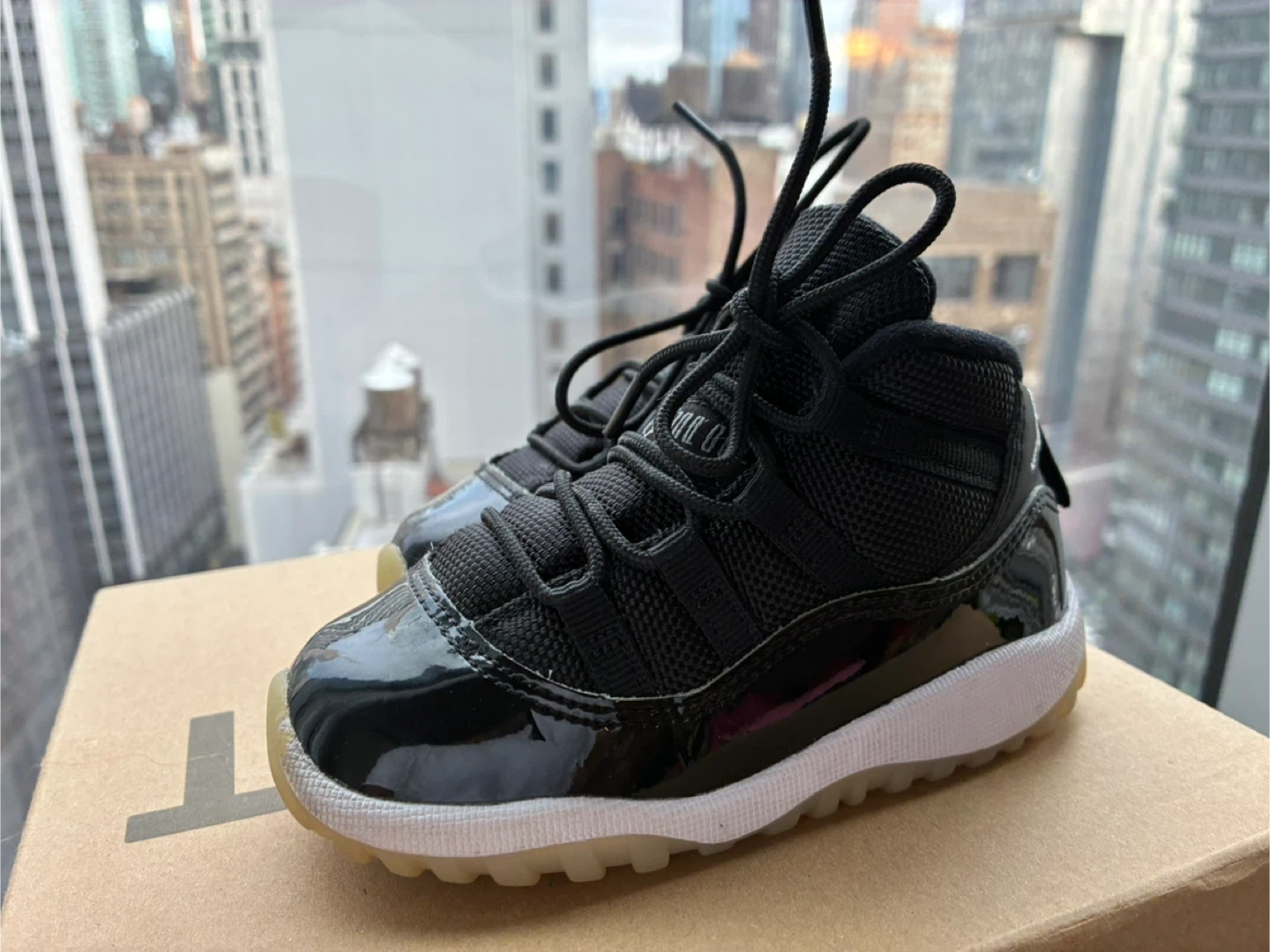 These are Jordan 11 Retro space jams I n black/white color way . They are in great condition and ready for a new home! They are perfect for toddlers.