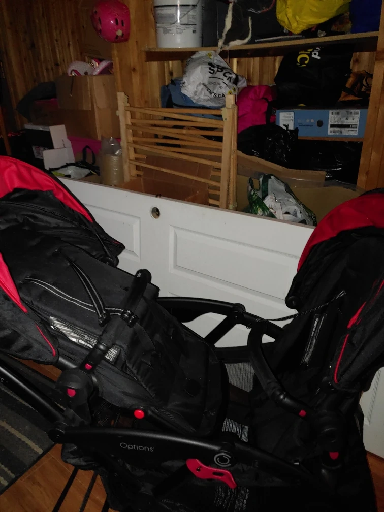 Selling a Contours Options double stroller in black and red! It's in great shape and ready for a new family. This stroller is super versatile and can be configured in multiple ways to suit your needs. Perfect for twins or kids of different ages!