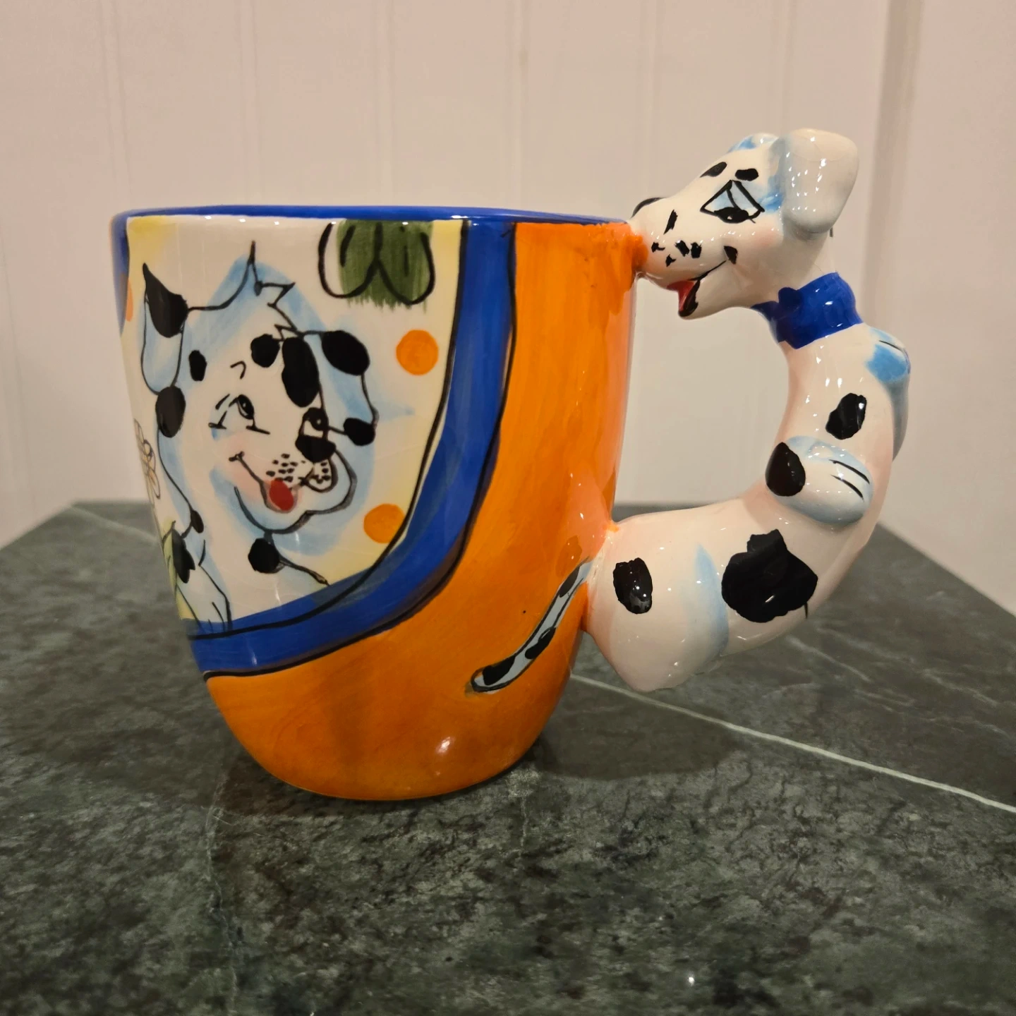 Check out this adorable 3D Dalmatian dog mug! It's got a unique design with a dog as the handle and cute Dalmatian illustrations on the side. Perfect for any dog lover or a fun addition to your mug collection