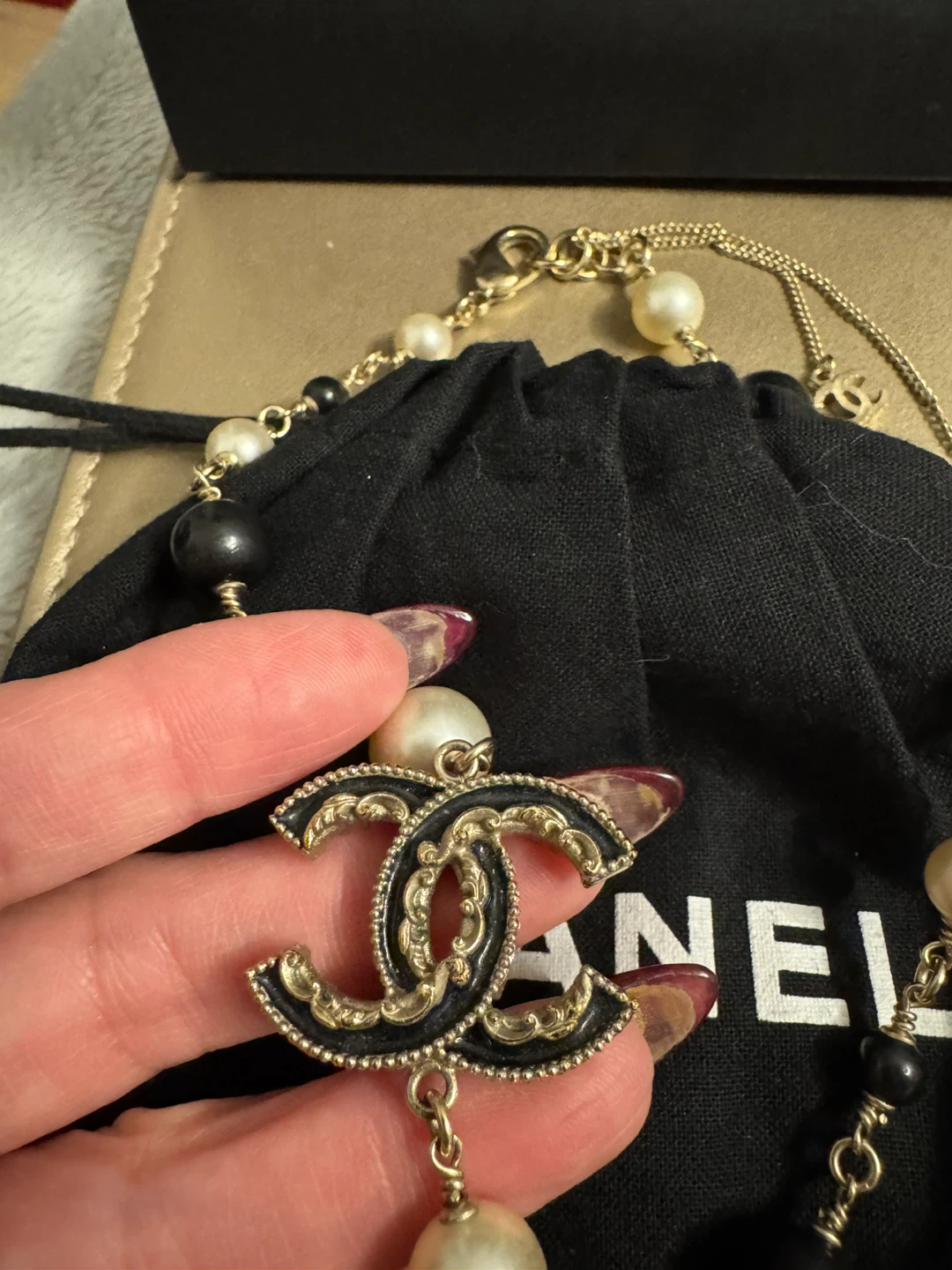 1 / 41 / 4Buy & SellAuthentic Chanel Pearl Necklace with Black and White PearlsAuthentic Chanel Pearl Necklace with Black and White Pearls$600Authentic Chanel Pearl Necklace with Black and White Pearls Comes with Dust Bag and Bag Made in Italy per StampConditionGoodBrandChanel WHERE TO MEETClairlea-BirchmountView MapSELLERverifiedMyraDowntown Toronto47435 reviews2 chats·2 favorites·165 viewsSEND CHAT TO SELLERHi Myra! I’m interested in your listing.Hi Myra! I’m interested in your listing.Get the Karrot app to chatSign In to chat