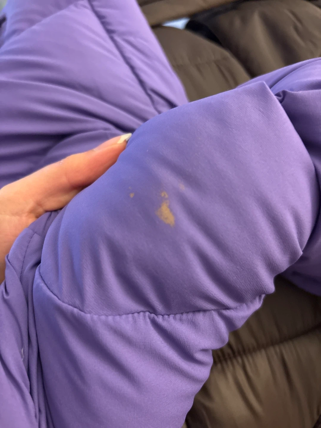has a small discolouration on the back right shoulder- was there upon purchase in store from Aritzia