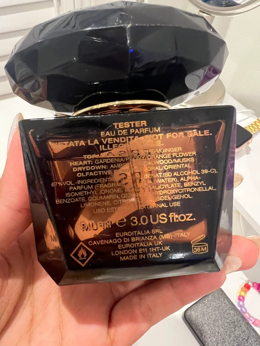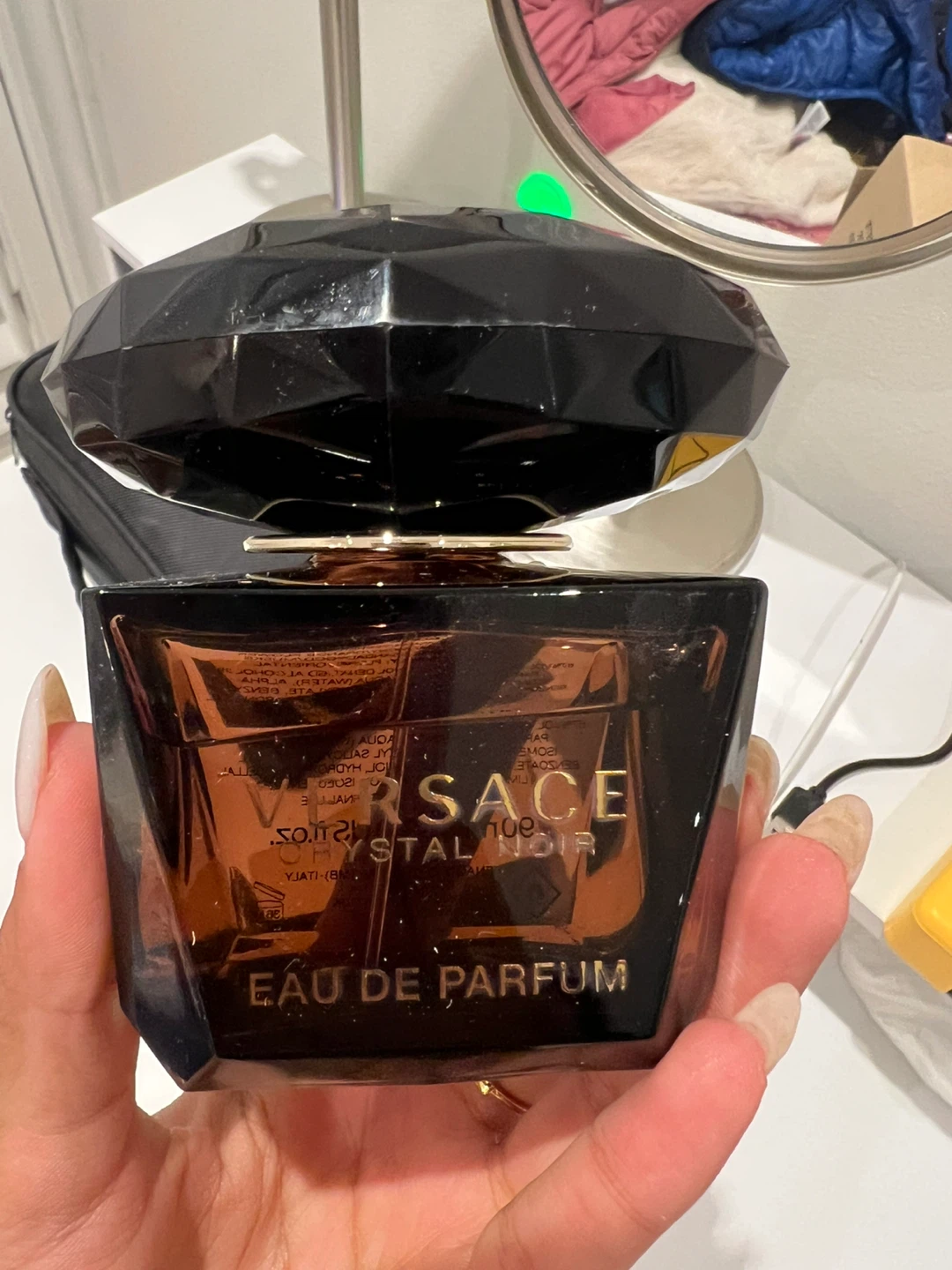 Selling a bottle of Versace Crystal Noir Eau de Parfum. It's a tester bottle with 90ml of fragrance.