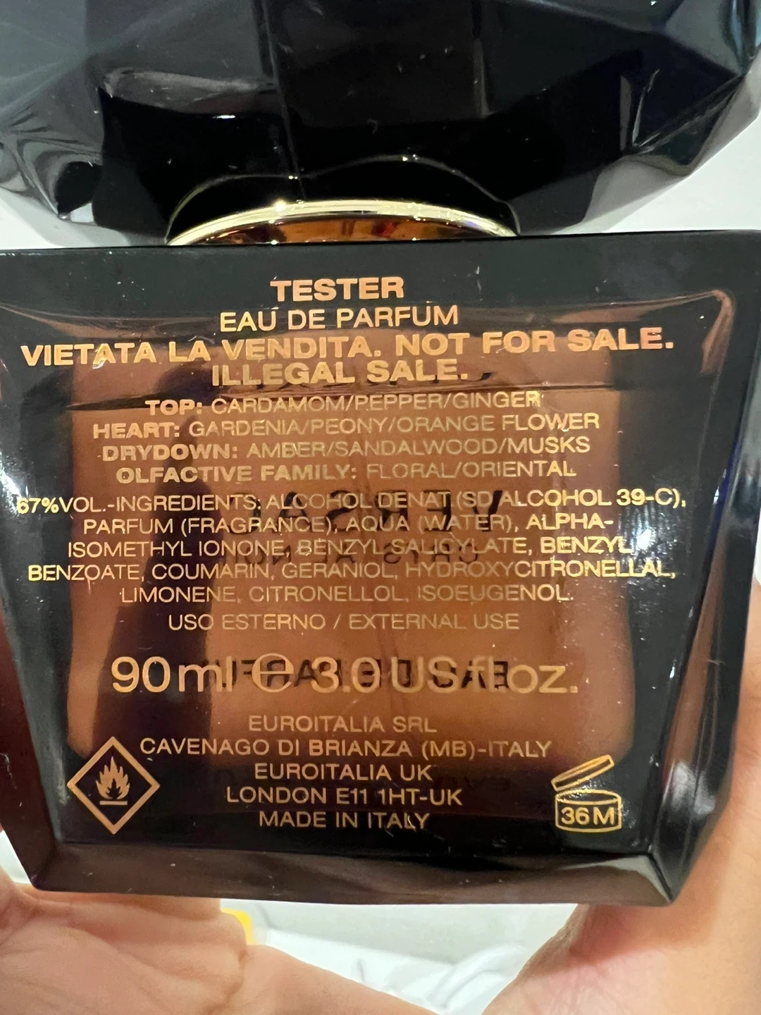 Selling a bottle of Versace Crystal Noir Eau de Parfum. It's a tester bottle with 90ml of fragrance.