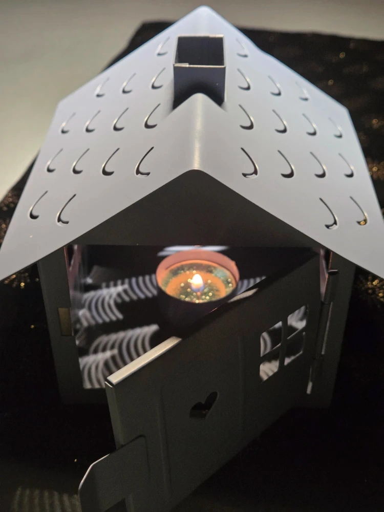 This is a cute metal house tealight holder! It's perfect for adding a warm glow to any room. The house design is charming and the metal construction ensures durability.