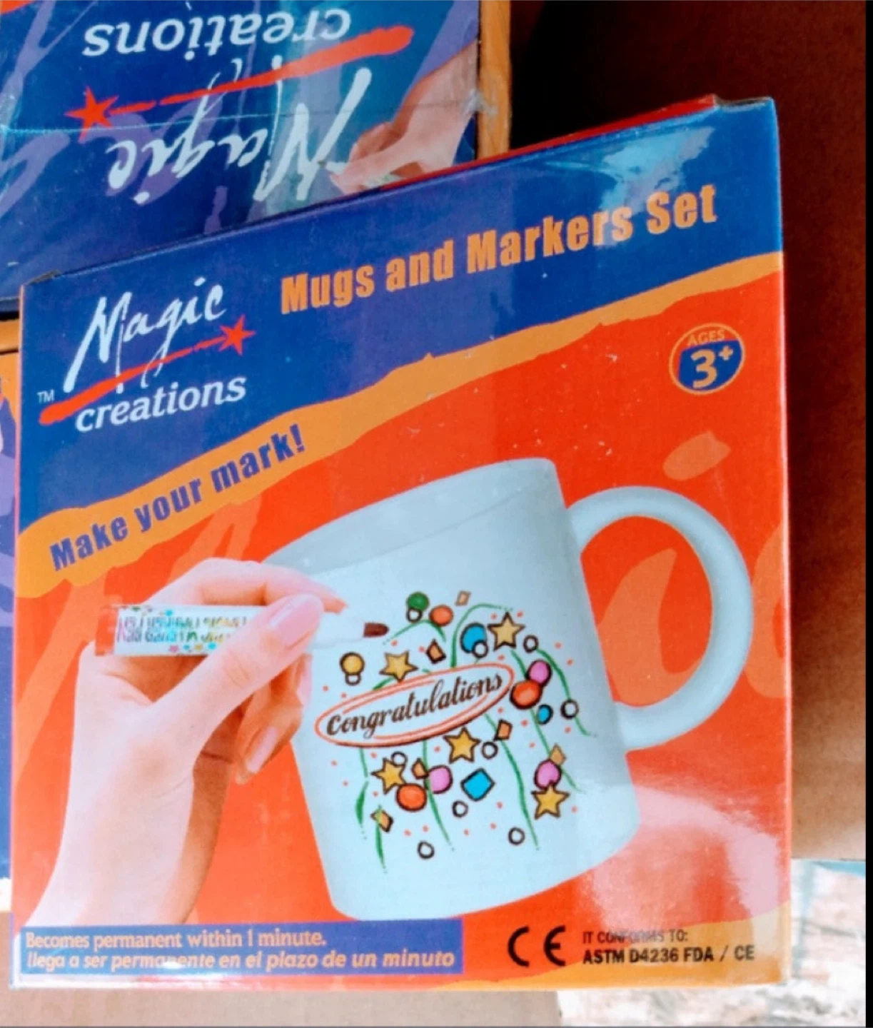 Get creative with this Magic Creations Mugs and Markers Set! Perfect for ages 3 and up, this set includes one mug and six markers to design your own masterpiece. It's fun, easy, and fast to create art that lasts forever! The box is included.