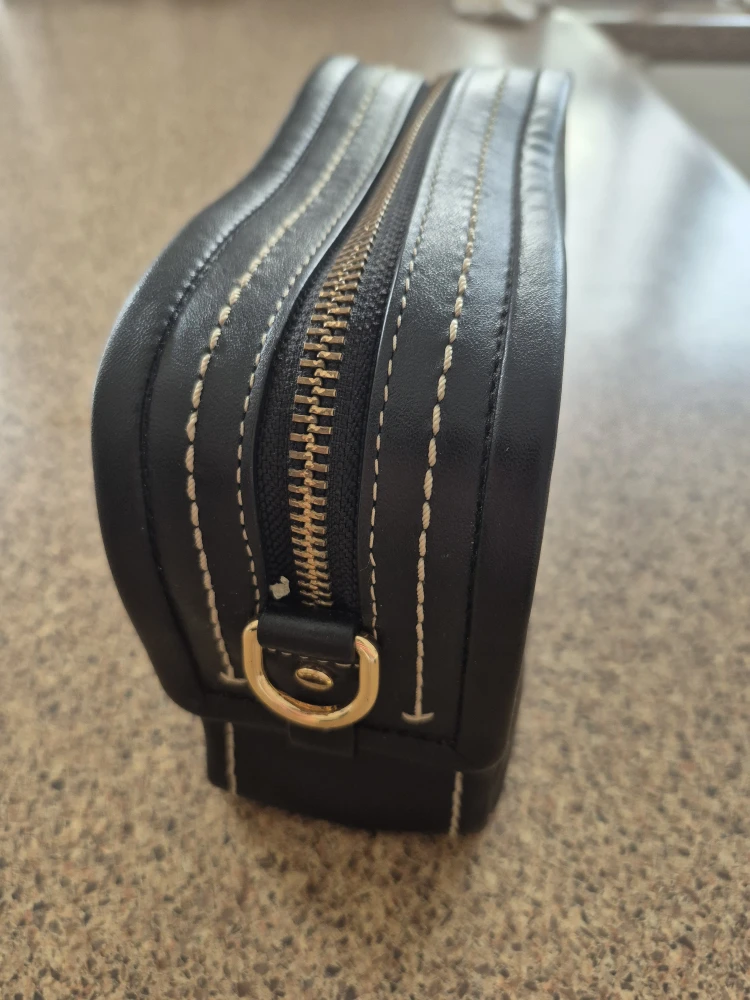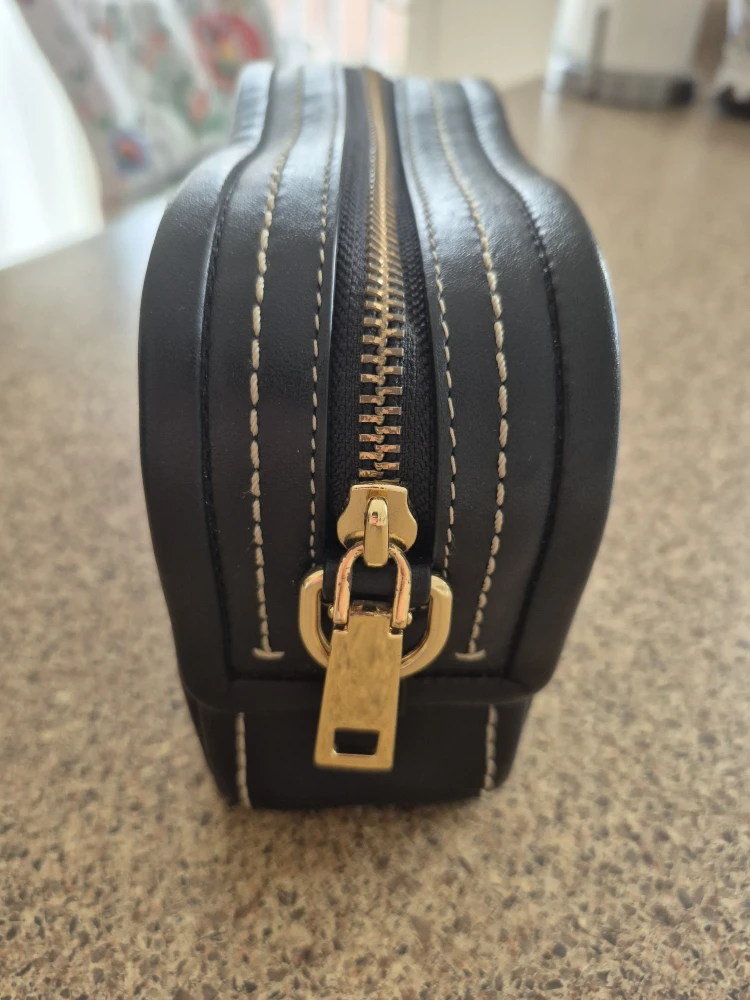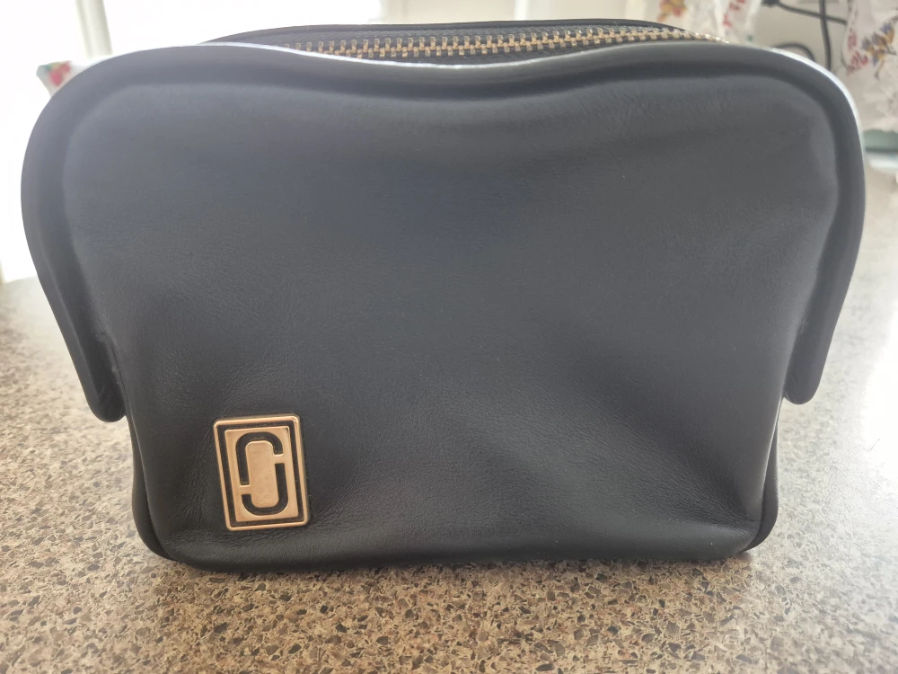 Selling a cute Marc Jacobs cosmetic pouch! It's black leather with a gold zipper and logo. Perfect for keeping your makeup organized.