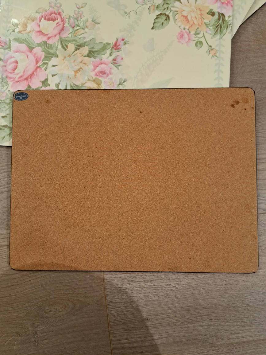 Giving away a set of four floral placemats. They feature a lovely floral design on a light yellow background. Perfect for adding a touch of spring to your dining table!