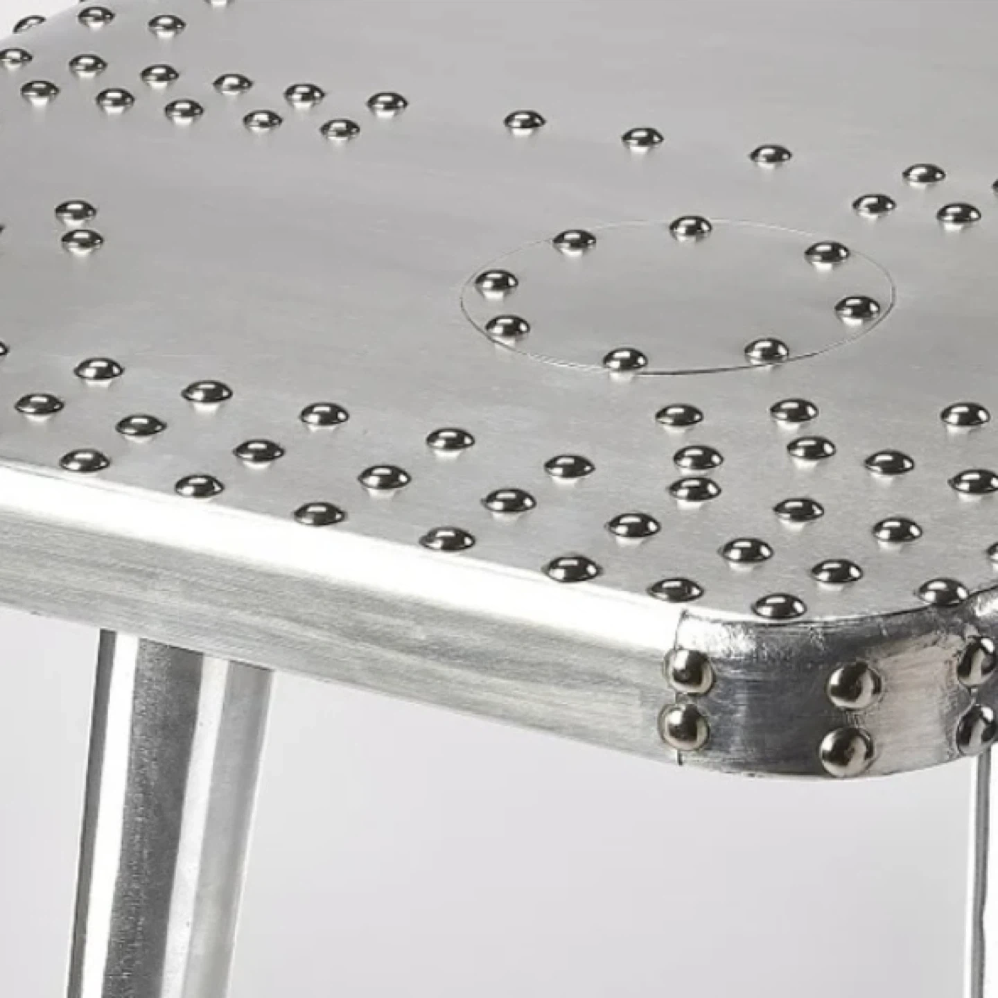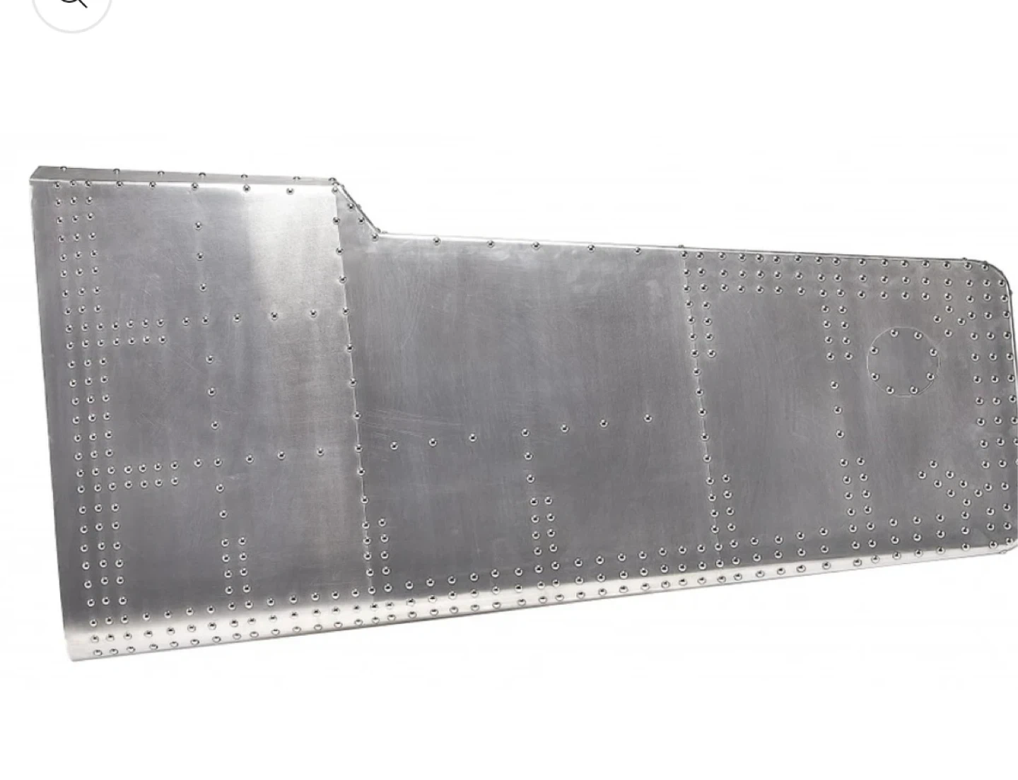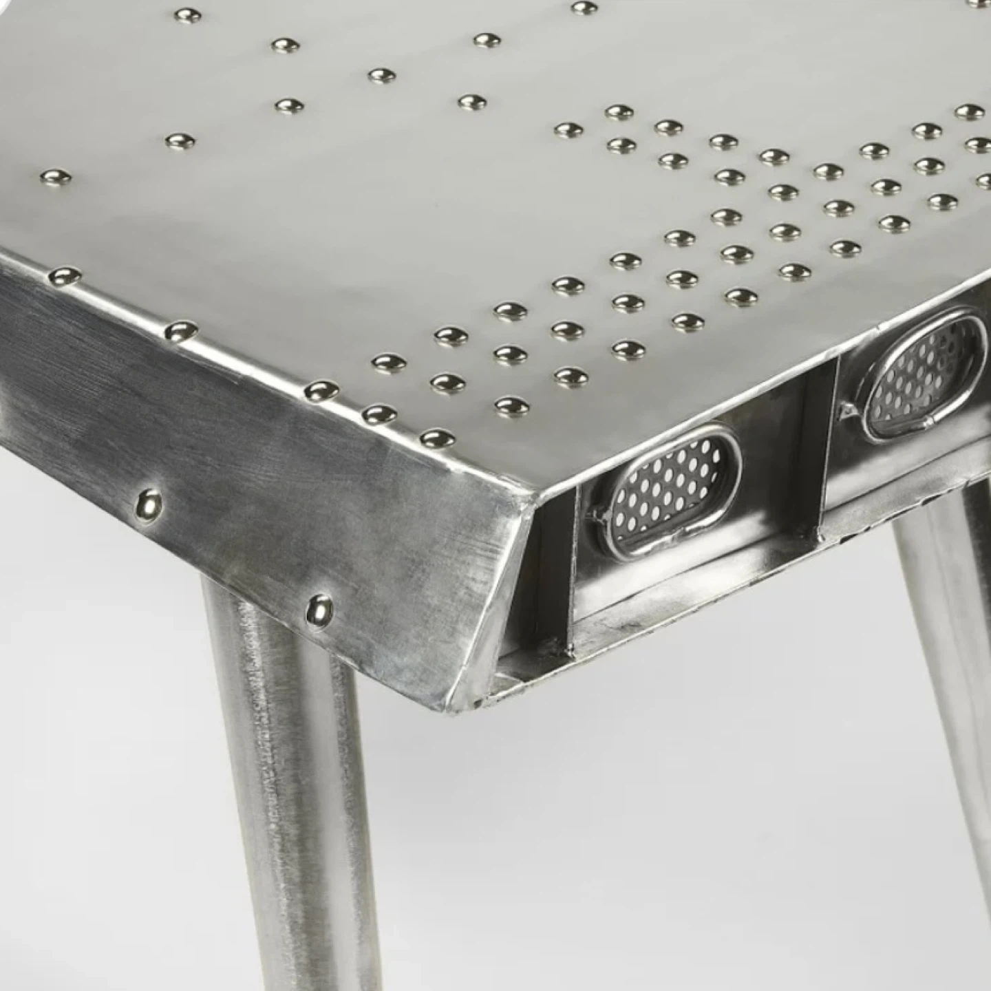 Selling a Homerroots Aviator desk. It's a stylish piece that would look great in any home office or workspace. The desk features a unique riveted aluminum design reminiscent of vintage aircraft. It's a sturdy and eye-catching piece! Purchased for $1600