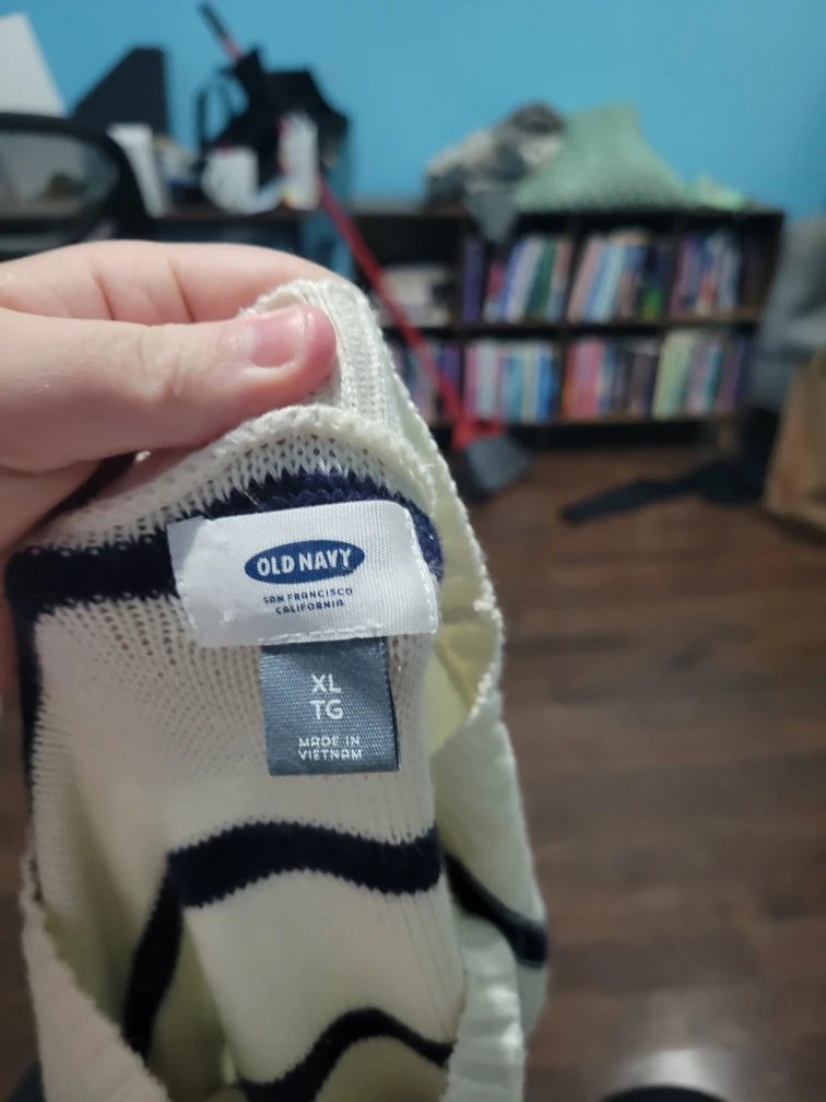 Cozy Old Navy sweater with a classic striped design! It's an extra-large size and made from a comfy material. Perfect for layering or wearing on its own.