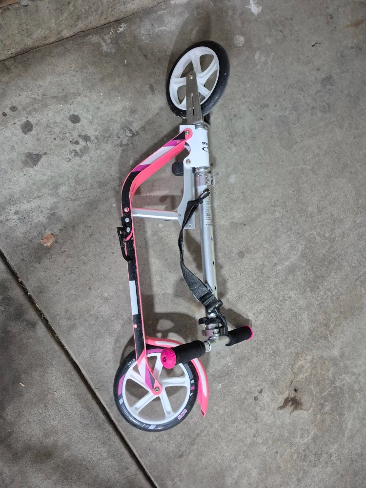 Selling a Hudora scooter in good condition! It features a pink and silver design and is perfect for kids or adults. This scooter is ready for a new home