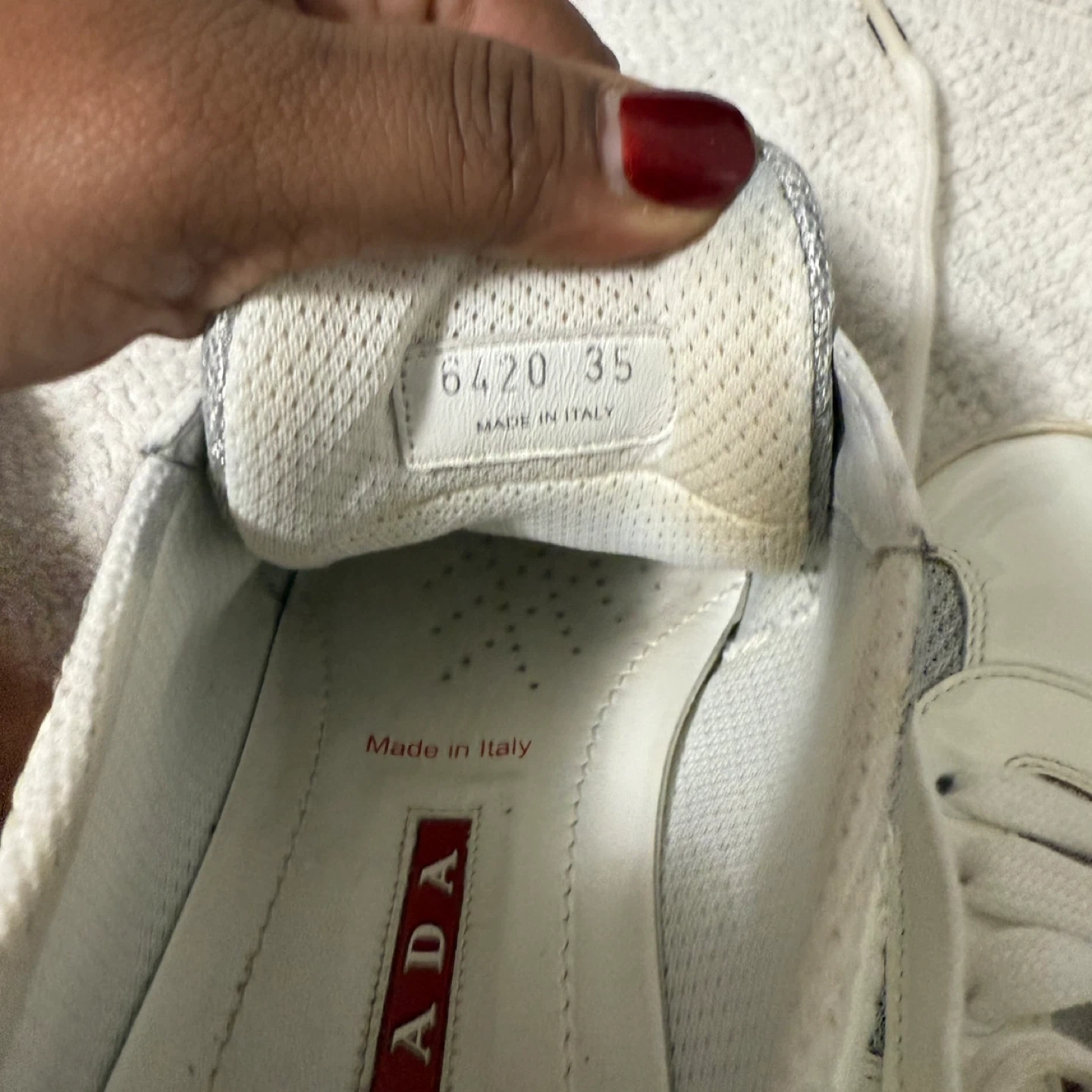 Selling a pair of rare Prada America's Cup sneakers in size 35. They're in good condition and made in Italy. The sneakers feature a combination of soft rubber and bike fabric.