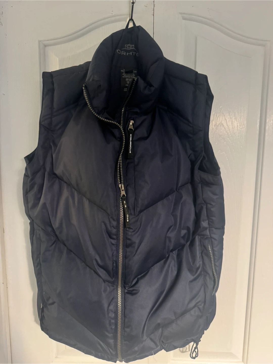 Stormtech puffer vest in great condition! It's a size medium and perfect for layering. The filling is 70% down and 30% feather, so it’s nice and warm. The outer shell is 100% polyester