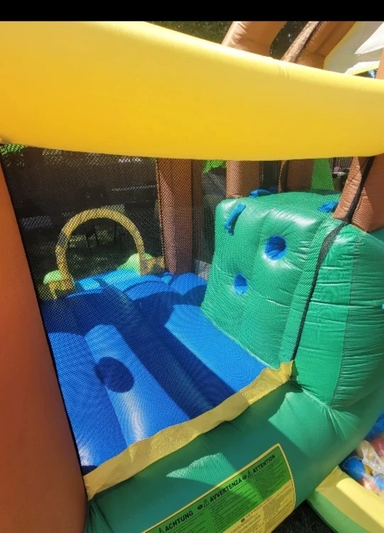 This inflatable bounce house is perfect for kids to have fun in the sun! It features slides and a climbing area for hours of entertainment. It is in good condition and ready for a new home!