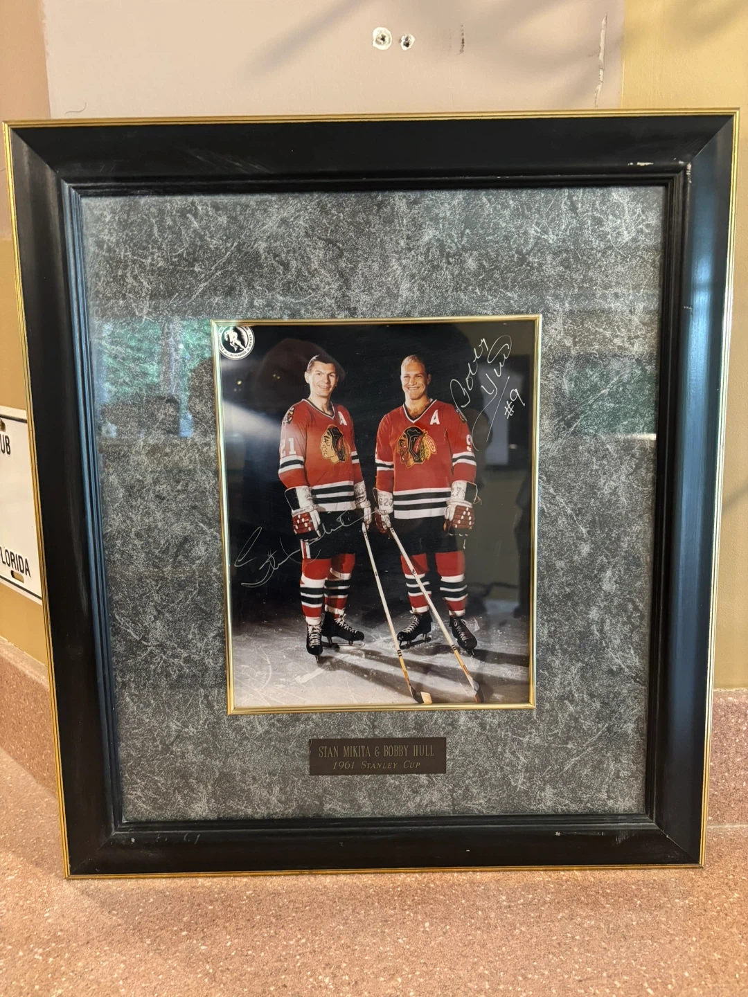 Selling a framed signed photo of Stan Mikita and Bobby Hull from the Chicago Blackhawks 1961 Stanley cup winners