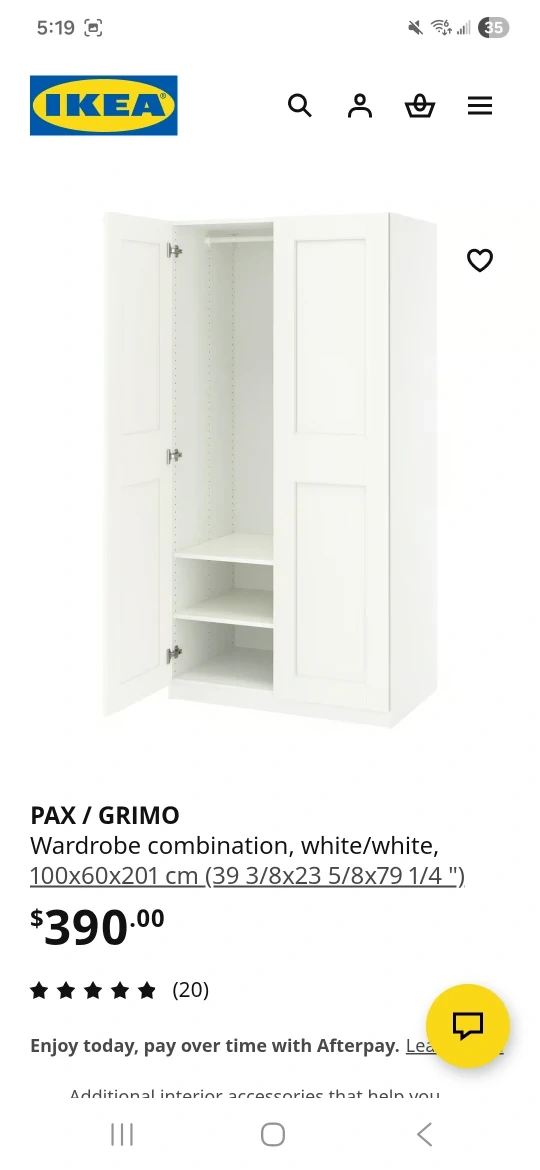 Selling an IKEA PAX / GRIMO wardrobe combination in white. It's in great condition and ready to organize your space! The dimensions are 100x60x201 cm (39 3/8x23 5/8x79 1/4 "). Originally bought for $390.00