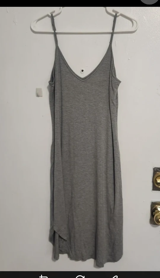A simple and comfy grey dress with spaghetti straps! It's a size medium and in great condition, ready for a new home