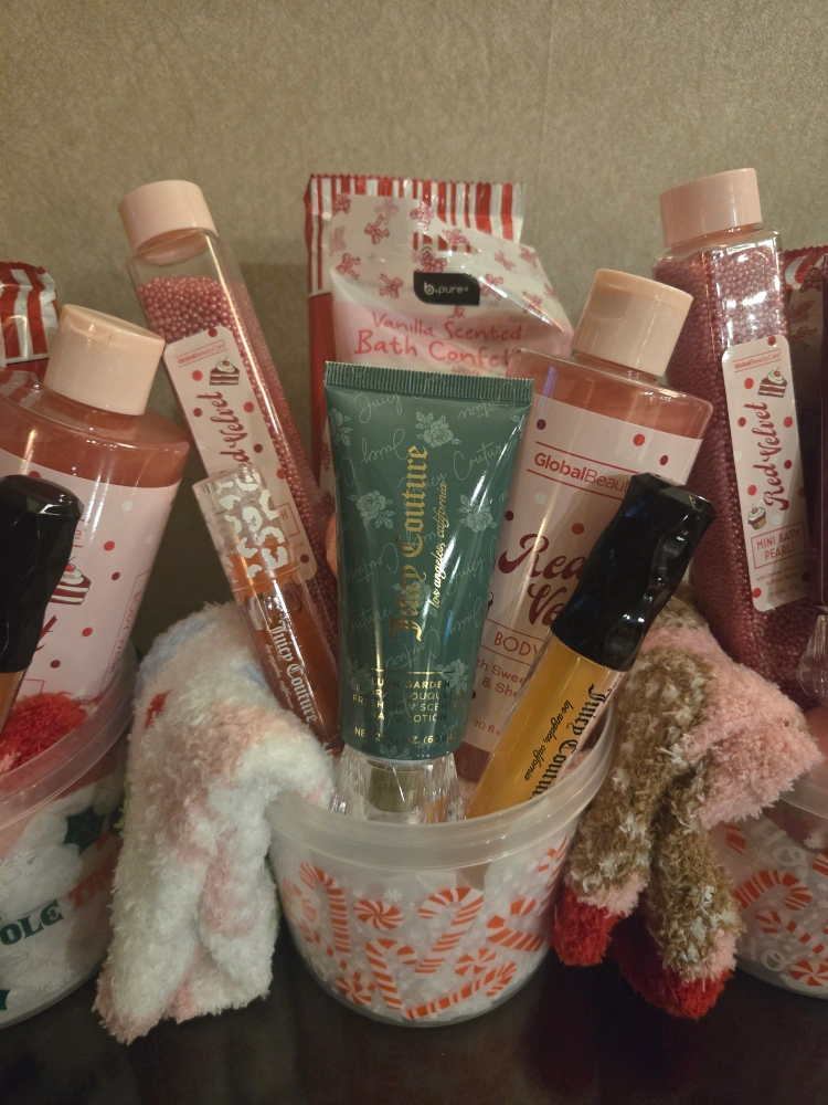 Juicy Couture Christmas Bucket. Perfect for a Juicy fan. Would make a good gift for teenager, secret santa or any Juicy lover. Packaged and ready to go!! 4 available $45