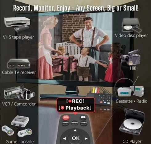 ViewLite AV, Portable Analog to Digital MP4/MP3 Video & Audio Converter with Remote. Capture CVBS/S-Video/RCA/Composite. VHS/Set-top TV Box/Retro Gaming/Hi8 Recorder. No PC Required.