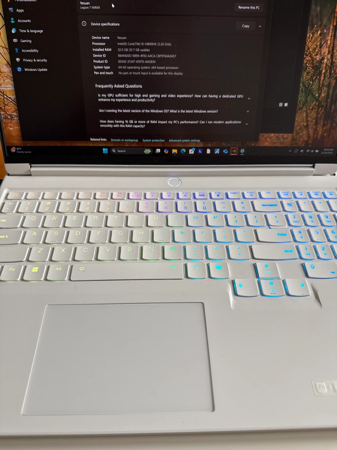 Selling a Lenovo Legion 7 laptop in great condition! It features an Intel Core i9-14900HX processor and 32.0 GB of installed RAM. A fantastic choice for both high-end gaming and video editing experiences. 1 TB storage, RTX 4070