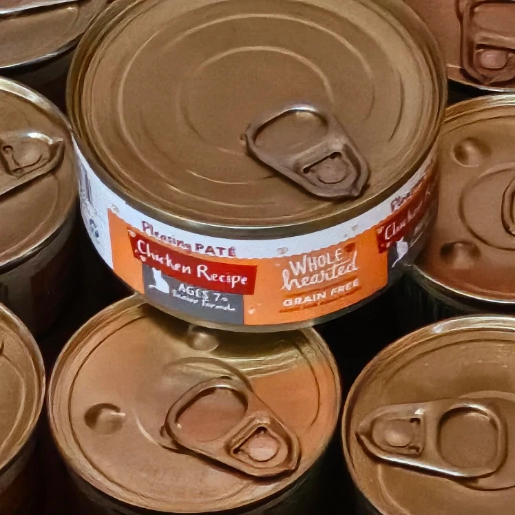 Selling some cans of WholeHearted Grain Free Chicken Recipe cat food. It's a pleasing pate that's suitable for cats aged 7+ years. It is also grain free! 12 small cans and 1 large