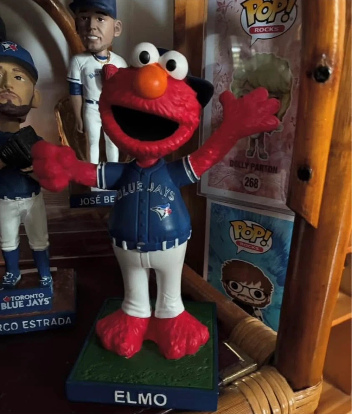 Selling an Elmo bobblehead wearing a Toronto Blue Jays uniform. It's in great condition and would be a fun addition to any Blue Jays or Elmo fan's collection. It is missing the flag but still in decent condition