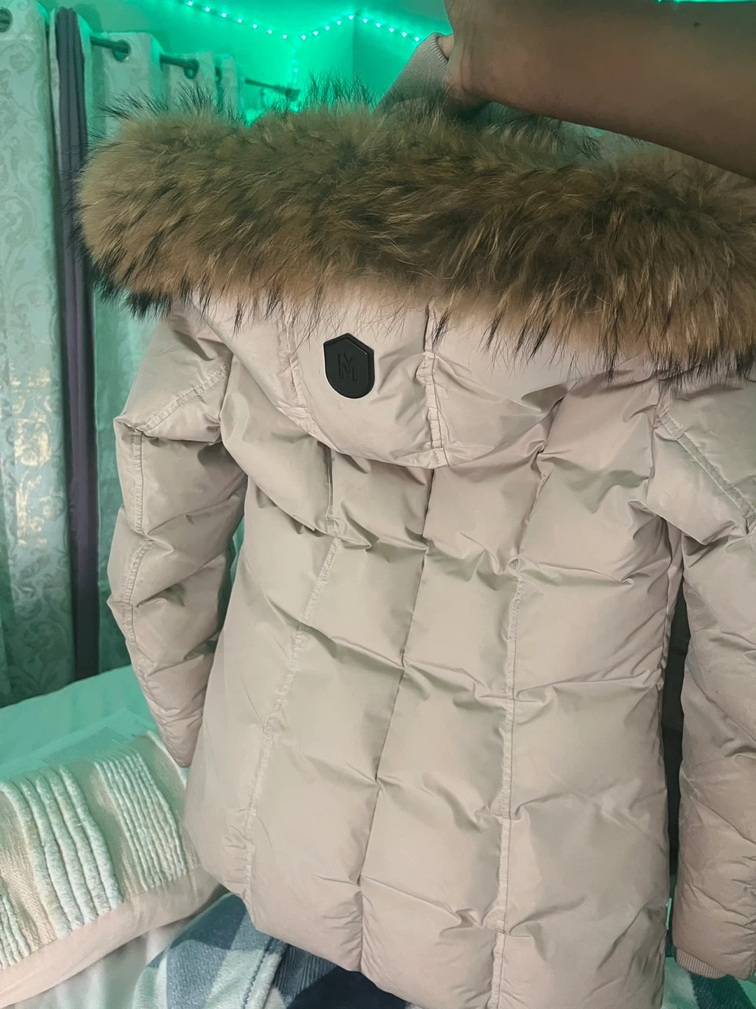 Selling a Mackage down winter coat in size small. It's in great condition and perfect for the cold weather! Features a stylish design and a warm, fur-trimmed hood.