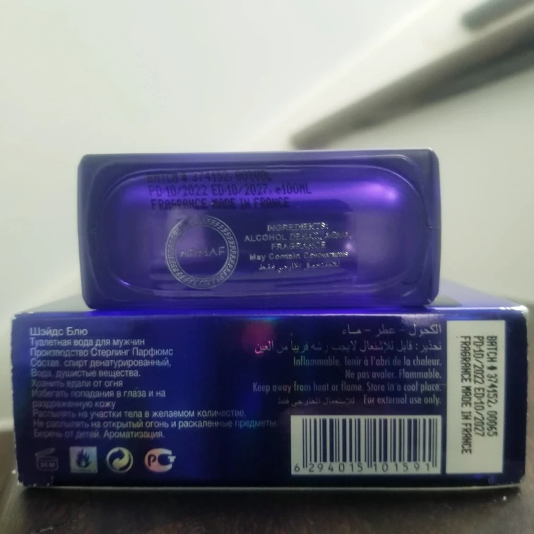 Selling a bottle of Shades Blue Eau de Toilette. It's a men's fragrance that comes in a 100ml bottle. The batch number is 22452 and it was produced in 2022 October 10, with an expiration date of 2027 October 10. The box is included!