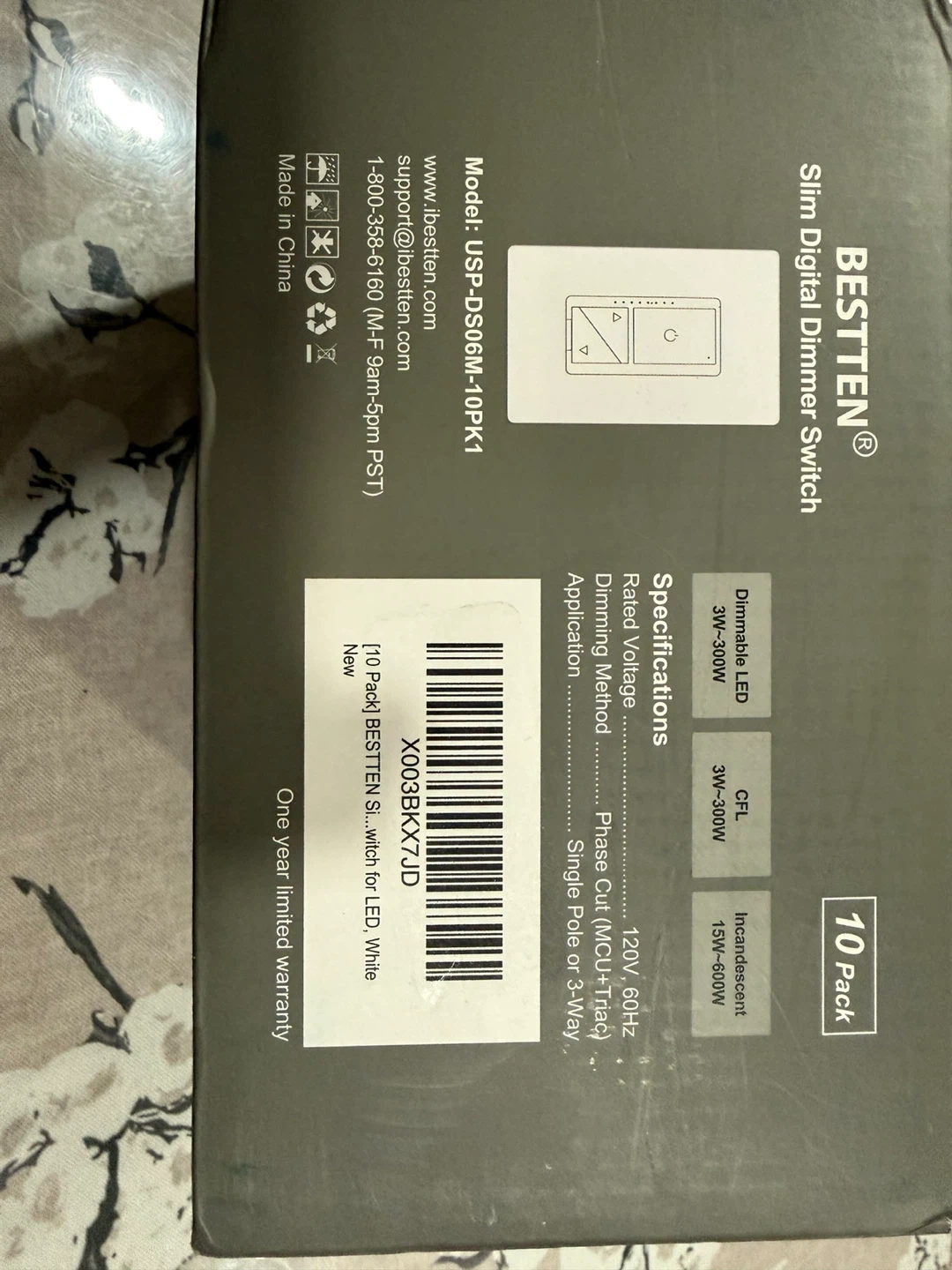 Selling a brand new BESTTEN Digital Dimmer Switch! It features a super slim design and MCU dimming. It's compatible with dimmable LED, CFL, and incandescent bulbs. The screwless wallplates are included!
