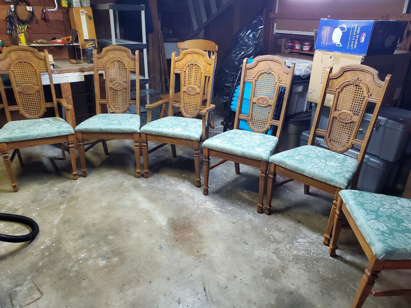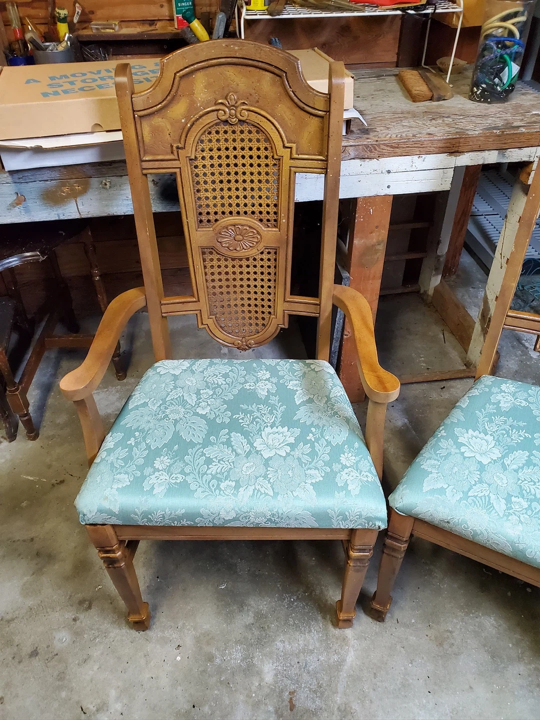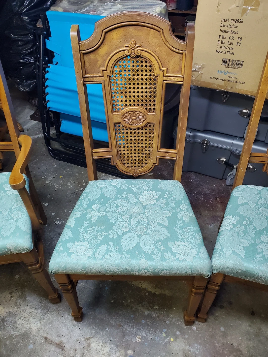 Selling a set of six vintage dining chairs. These chairs feature a lovely woven cane back and a floral patterned seat. They would make a great addition to any dining room! Priced to sell!