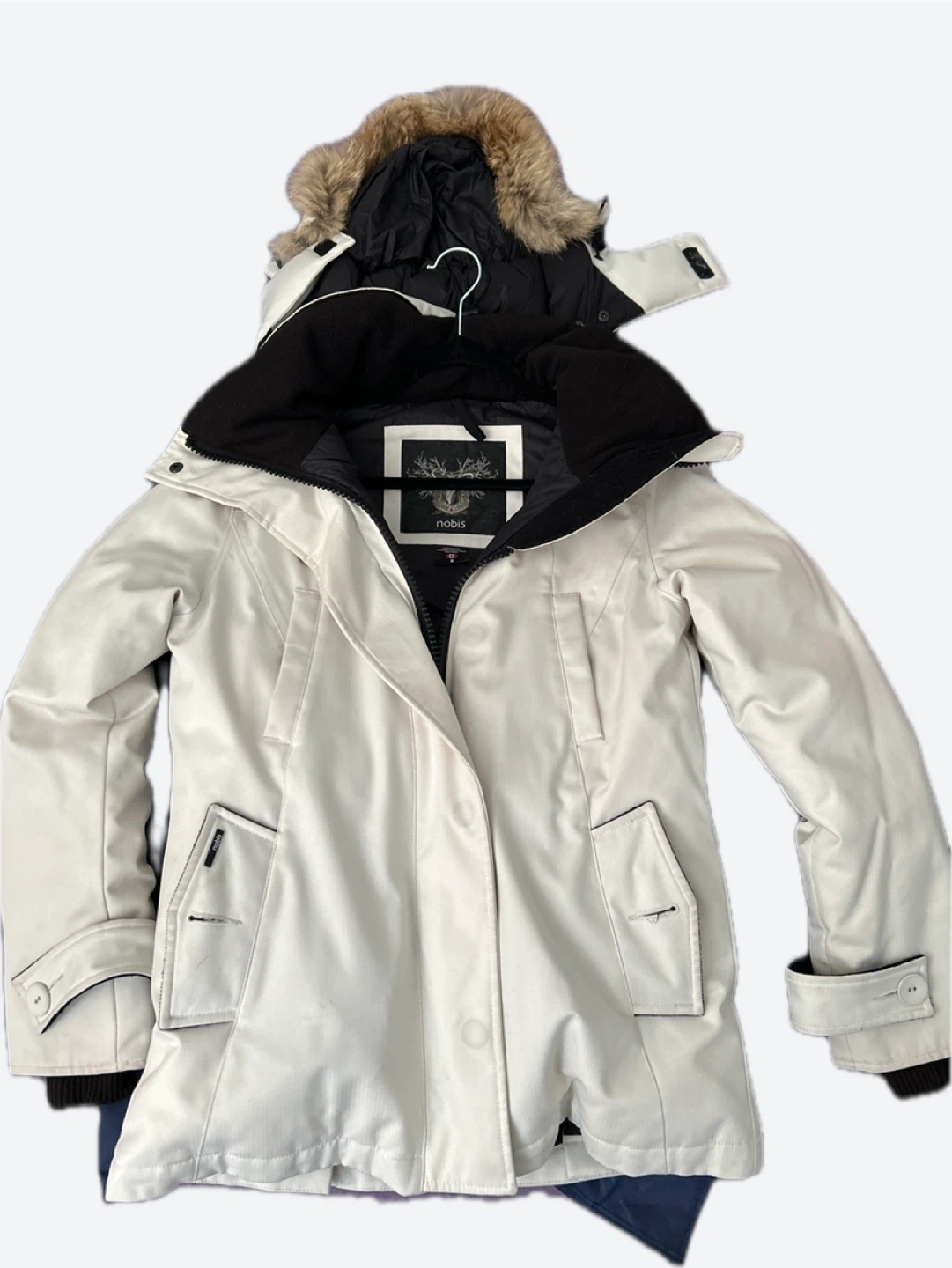 Selling a Nobis ladies' winter jacket in size small. It's a stylish and warm padded jacket perfect for the Canadian winter weather. The jacket features a fur-trimmed hood and a durable outer shell to keep you cozy and protected from the elements
