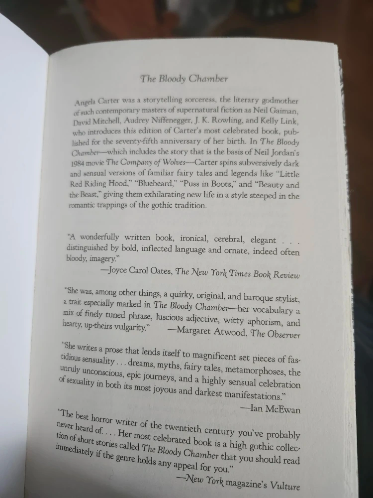 Selling a copy of "The Bloody Chamber" by Angela Carter. This is the Penguin Classics Deluxe Edition, perfect for fans of gothic literature and dark fairy tales. A wonderfully written book, both ironic and cerebral