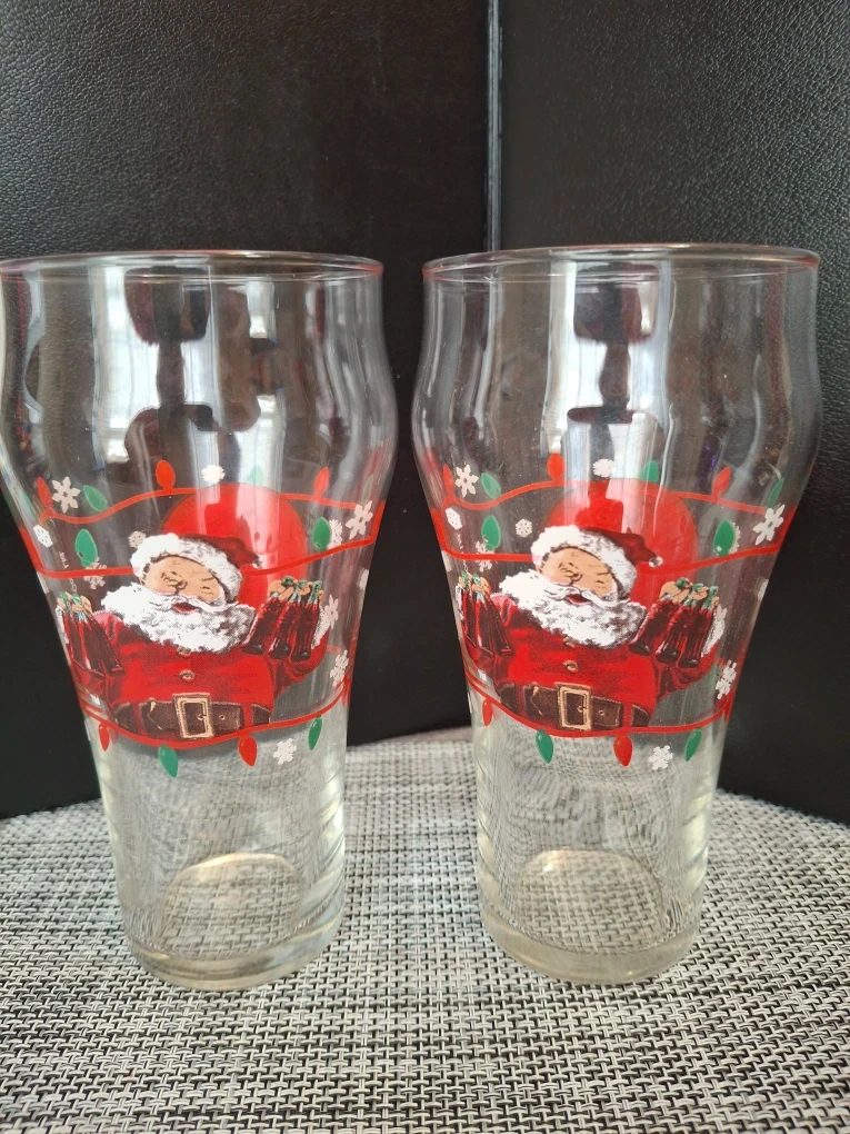 Selling a pair of Coca-Cola glasses featuring Santa Claus. They're in great shape and would be perfect for the holidays!
