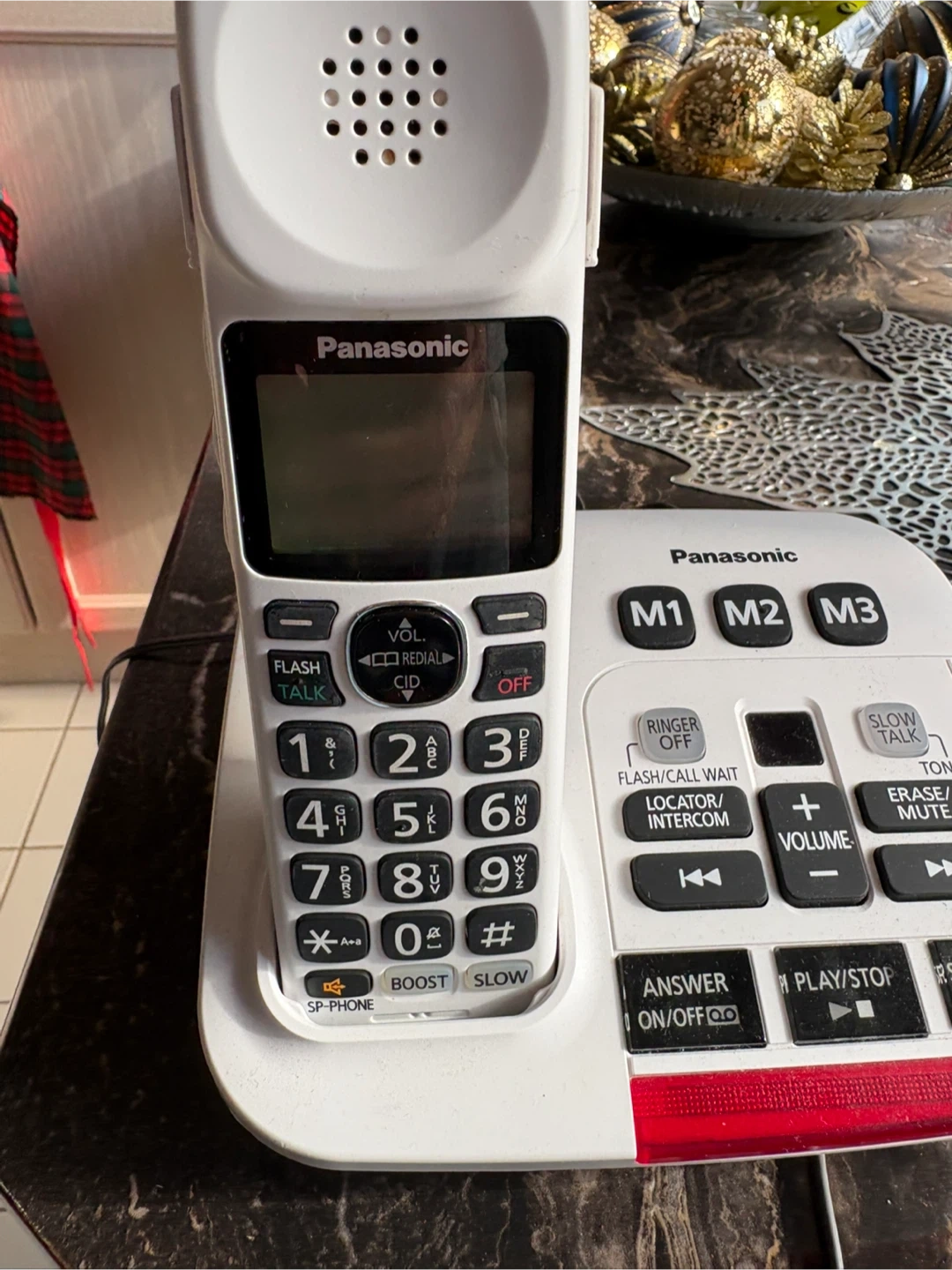 Selling a Panasonic cordless phone. It's in great shape and ready for a new home! Features include a speakerphone, volume control, and memory buttons for easy dialing. Perfect for home or office use