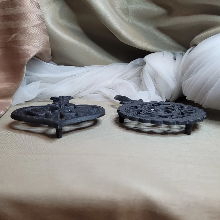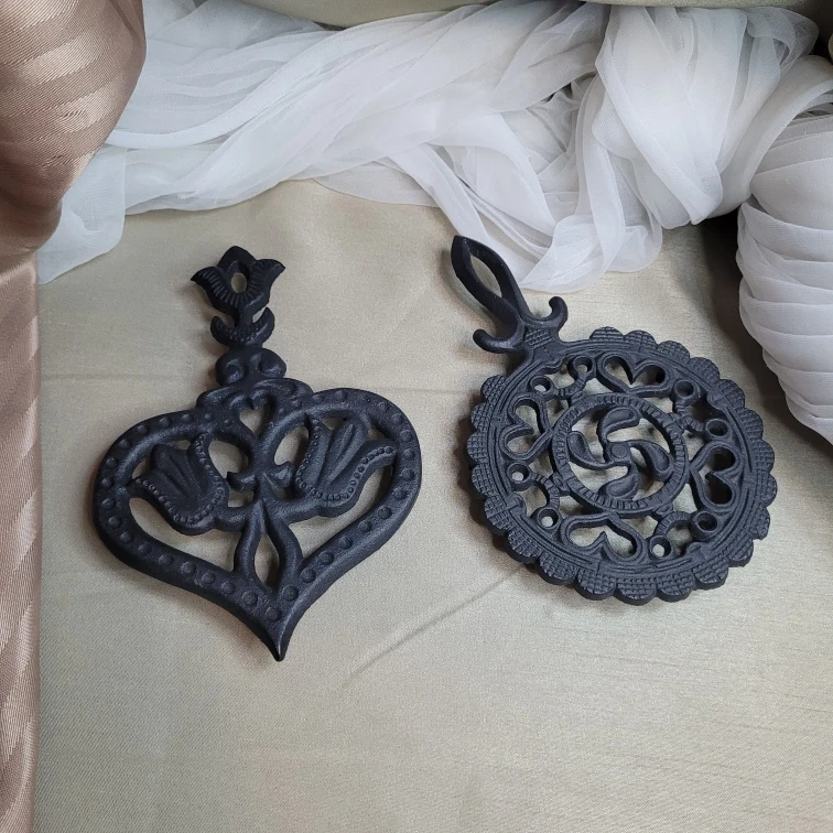 Pair of 7 1/2" x 5" Cast Iron Canada Forge Trivets Devor Excellent Condition selling both together please see all pictures Please See all my Other Listings, Bundle & Save for a Better Deal! Located in Bradford, May be able to Meet, Shipping Offered at Buyers Expense, Please contact me for more Info & to make arrangements, sorry no holds without an ET, Thank you so much for Looking!