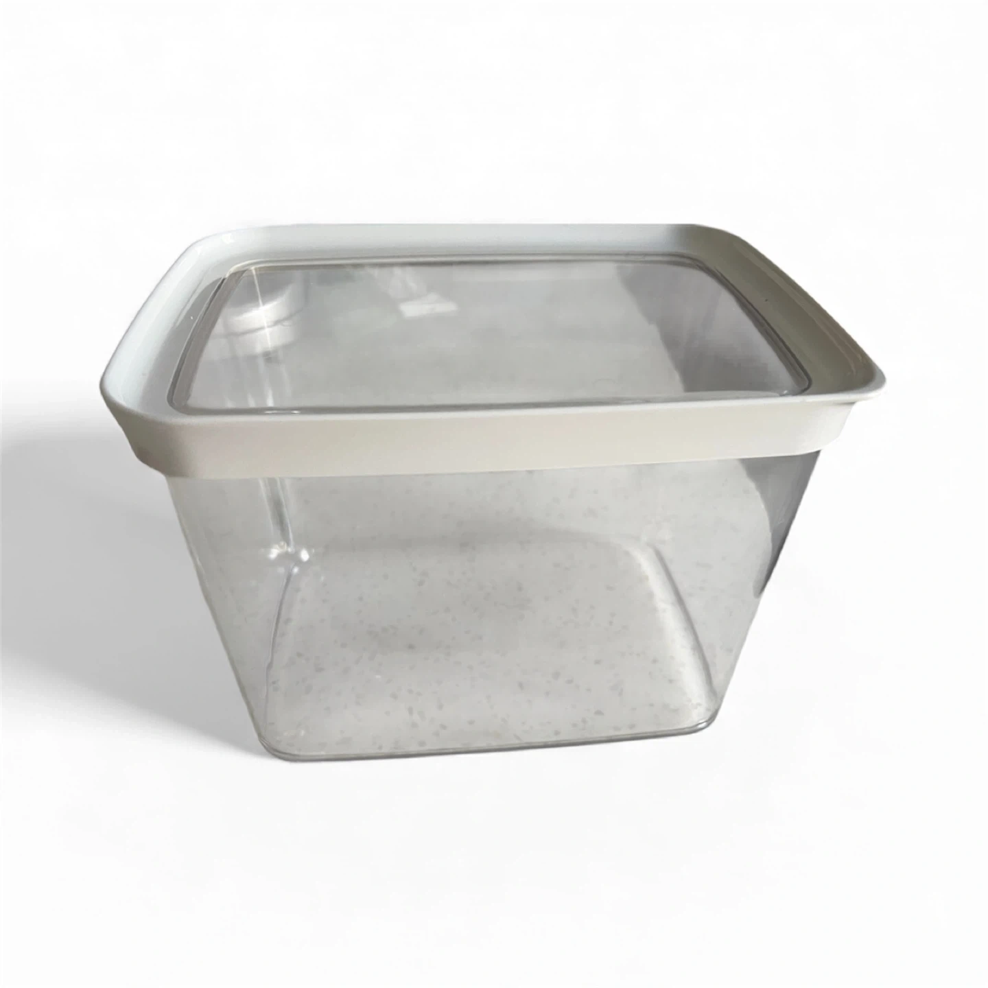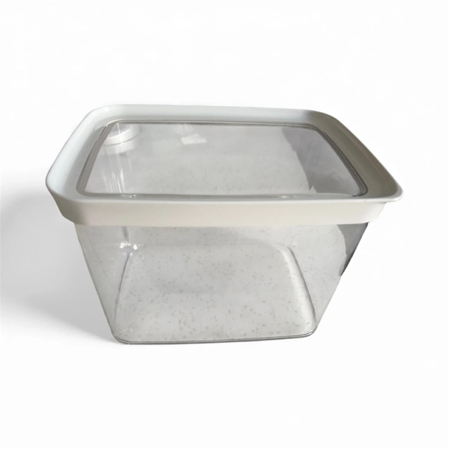 Selling a clear square plastic food container. It's in great shape and ready to store your leftovers or snacks. Perfect for keeping your fridge organized!