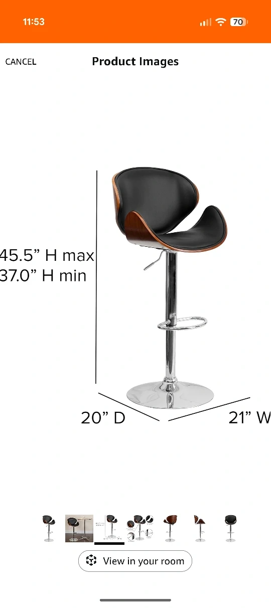 - Dimensions: 45.5" H max, 37.0" H min, 20" D, 21" W