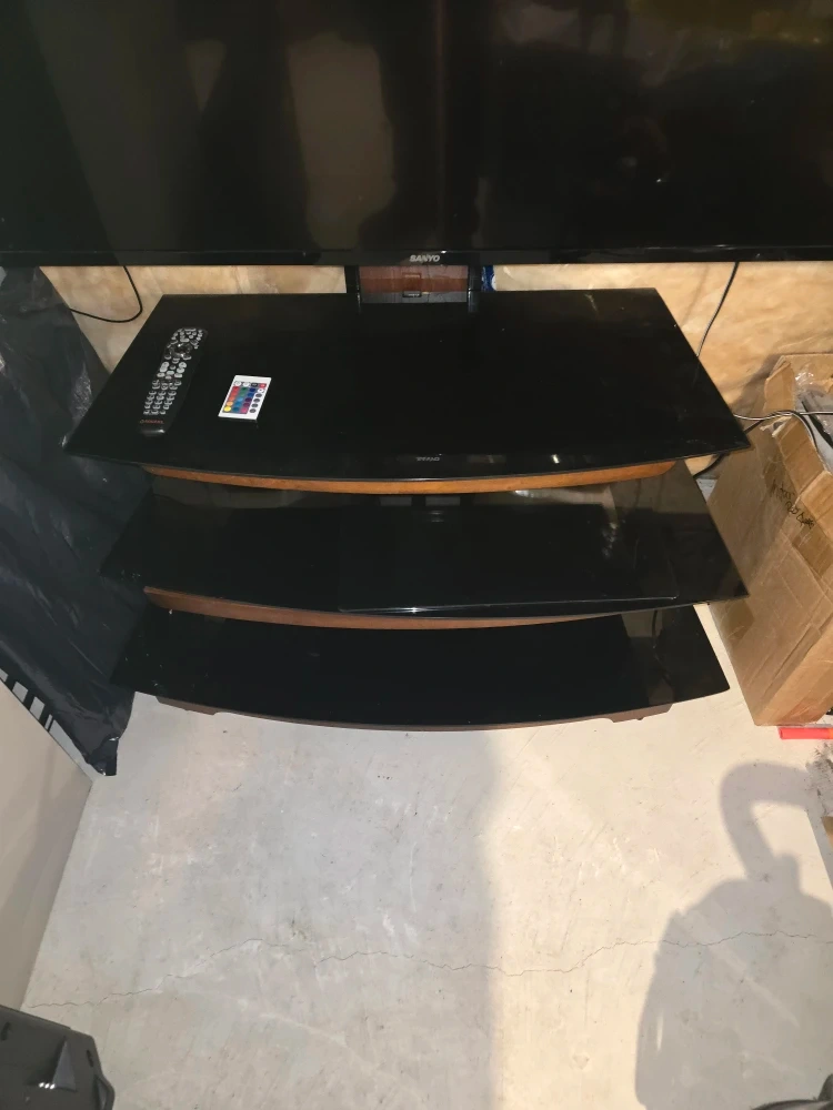 Selling a Sanyo TV along with a stylish glass shelf stand. Perfect for your entertainment setup! With attached back led lights and a controller to control the color