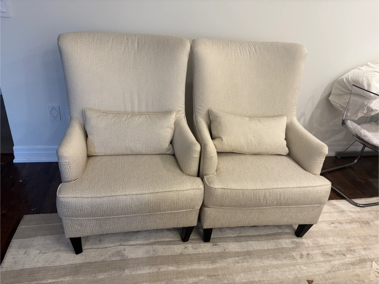 1 / 41 / 4Buy & SellSet of 2 Cream Fabric ChairsSet of 2 Cream Fabric Chairs$500Used for staging only Set of 2 cream chairs See photos for the beautiful pattern details! Pick up in Thornhill near Bathurst and CentreConditionNewWHERE TO MEETCheck LocationView MapSELLERverifiedRaynaThornhill57352 reviews0 chats·0 favorites·24 viewsSEND CHAT TO SELLERHi Rayna! I’m interested in your listing.Hi Rayna! I’m interested in your listing.Get the Karrot app to chatSign In to chat