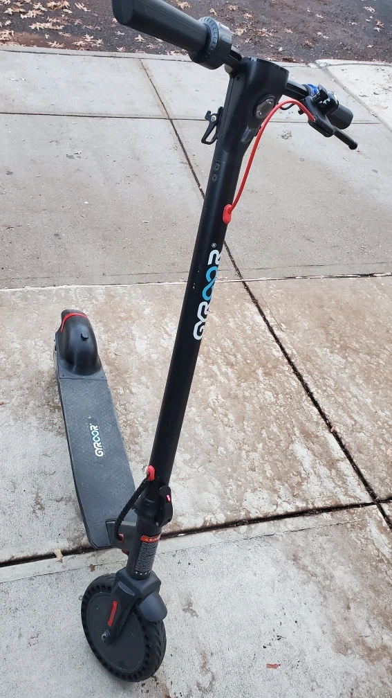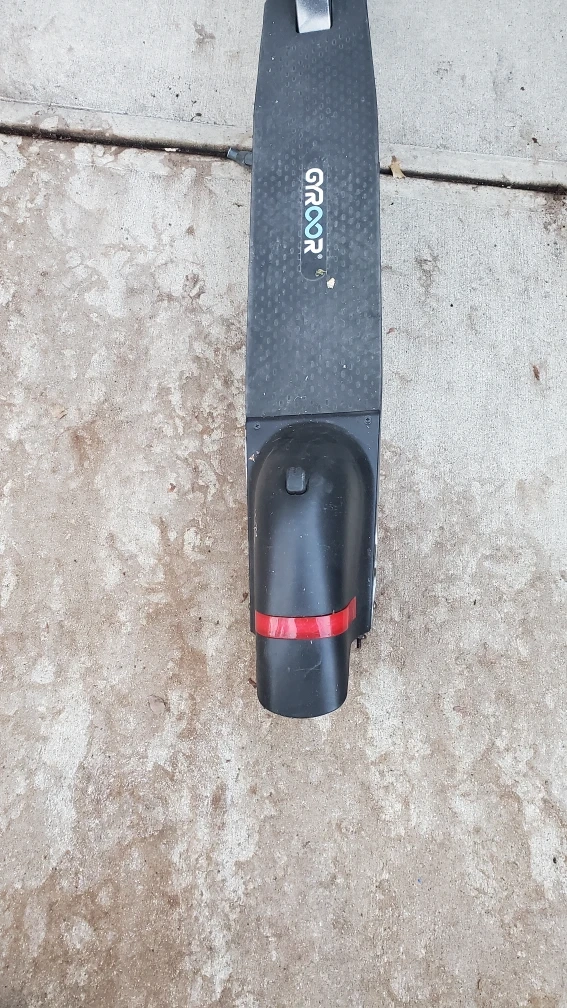Selling a used Gyroor electric scooter in good condition. It's dark gray new solid tires doesn't get flats, it still has plenty of life left but needs a battery.