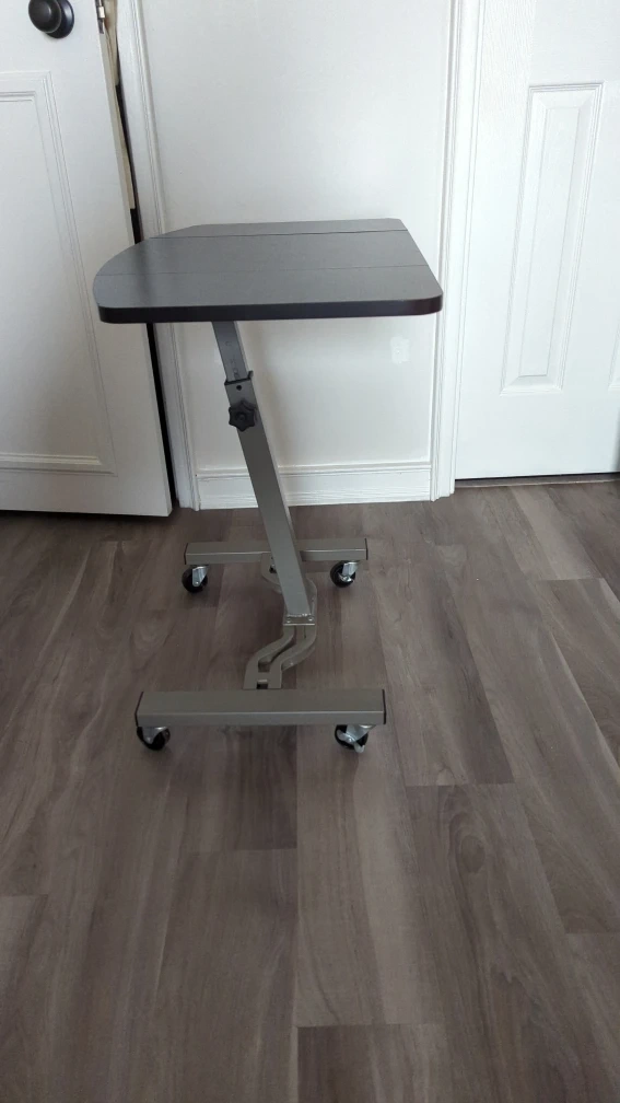 Selling an adjustable rolling laptop desk! It's in great shape and perfect for working from home or just relaxing with your laptop. The height is adjustable, and the wheels make it easy to move around the house.