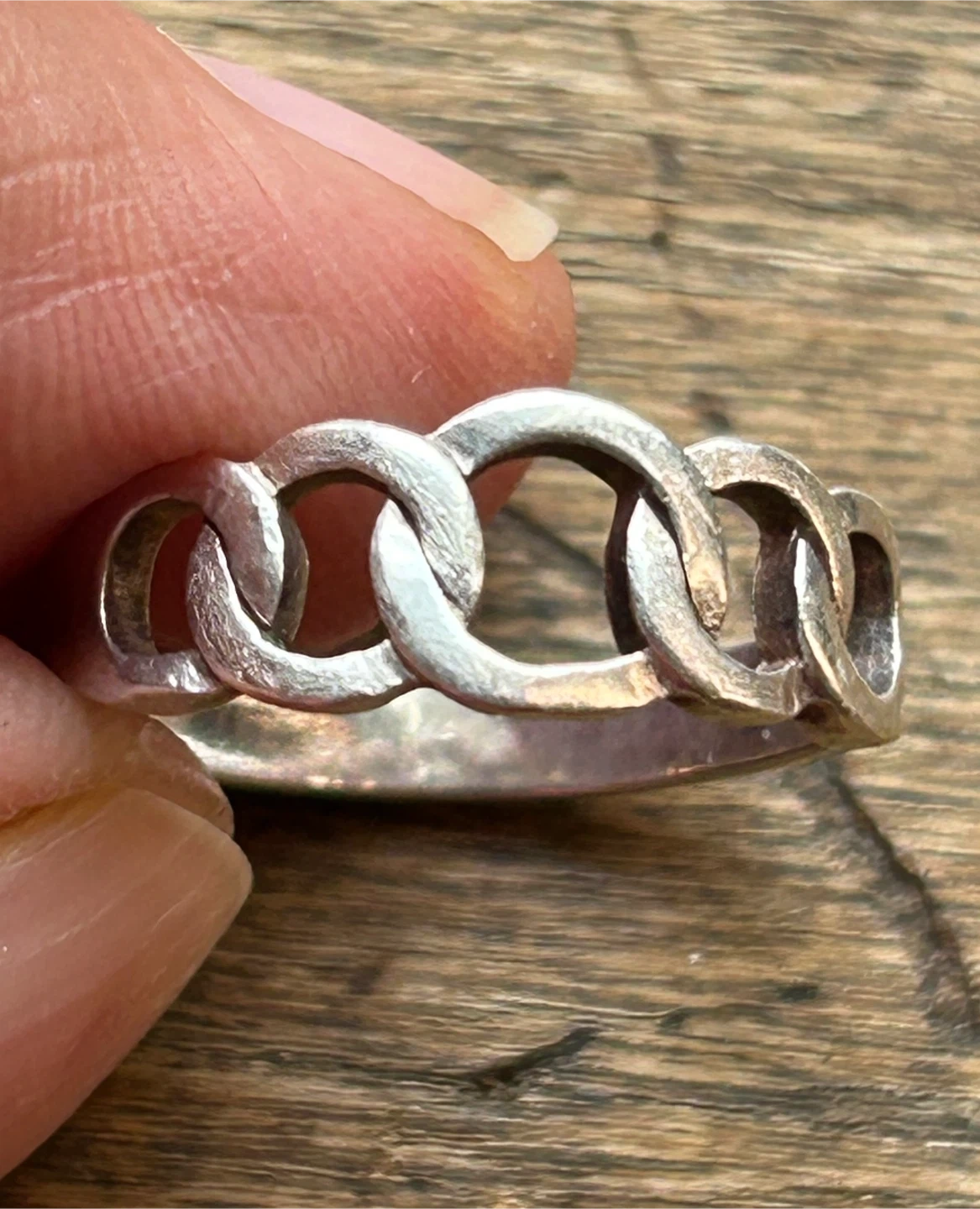 $12 Sterling silver 925 ring knot chain circles interlocking women men jewellery Donlands O'Connor