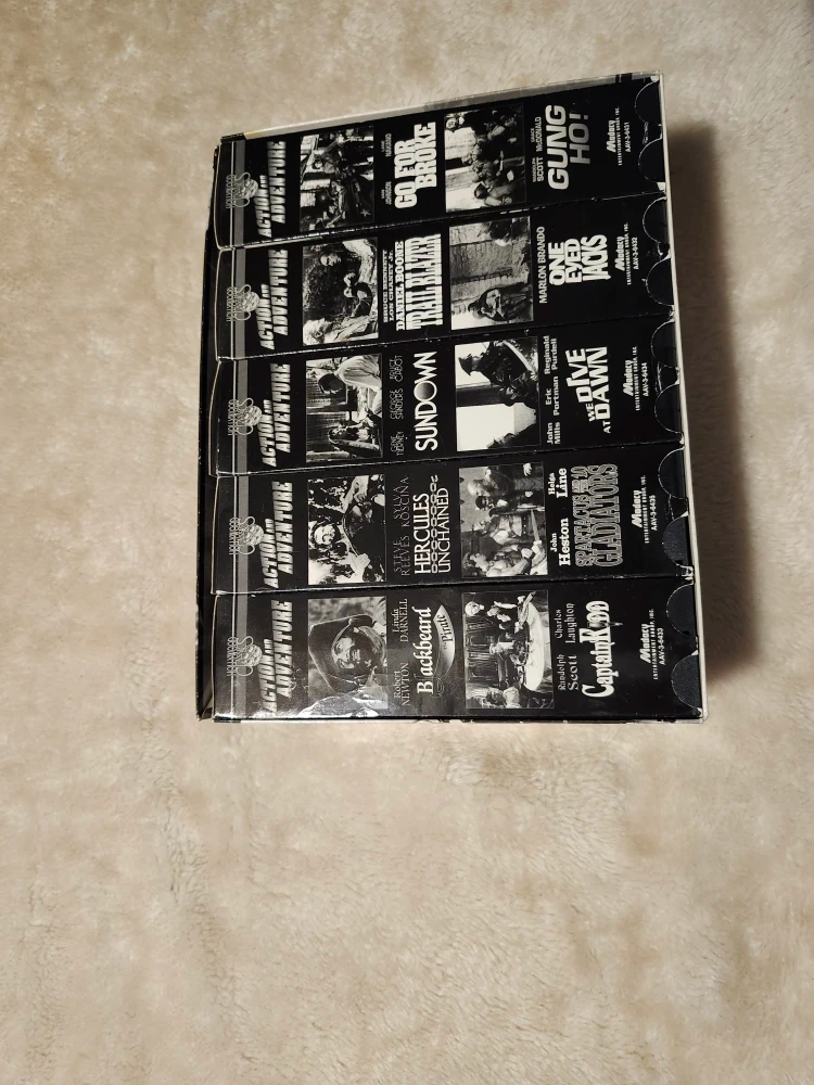 Selling a collector's edition VHS set: Action and Adventure, featuring 10 Hollywood Classics. Great for movie buffs and collectors!