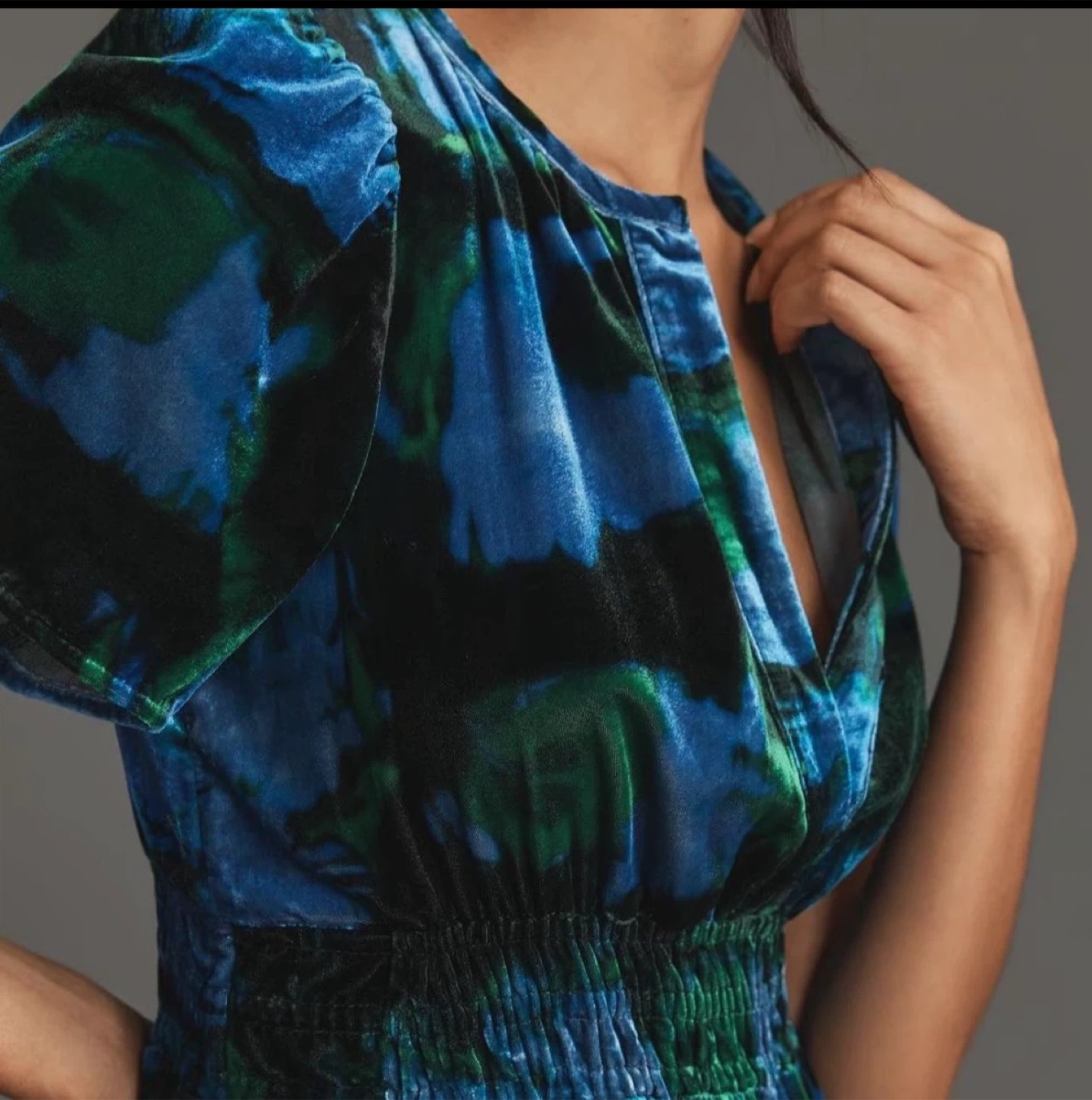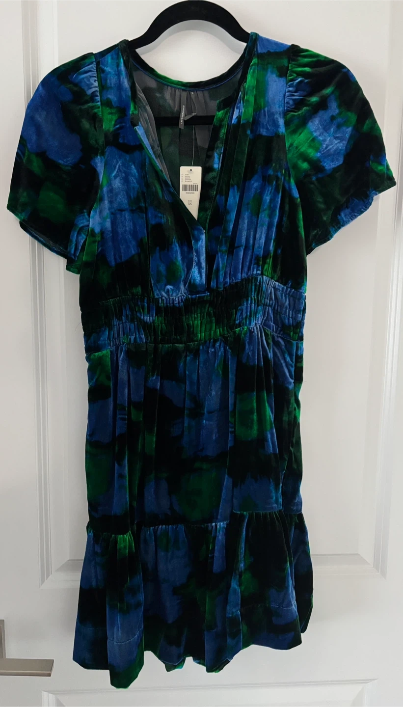 Anthropologie Somerset Mini Dress Velvet Blue Pockets BNWT ~ XS