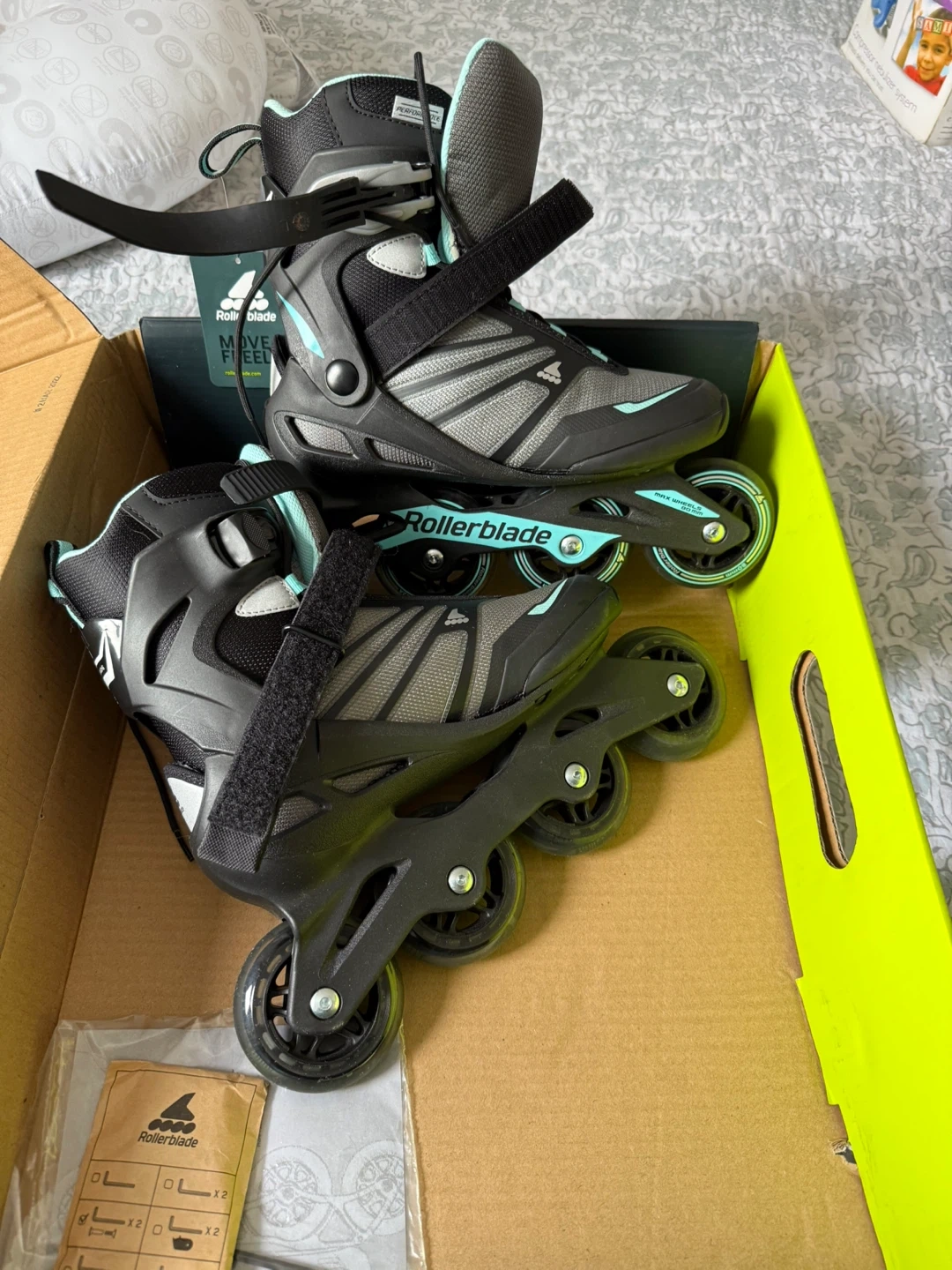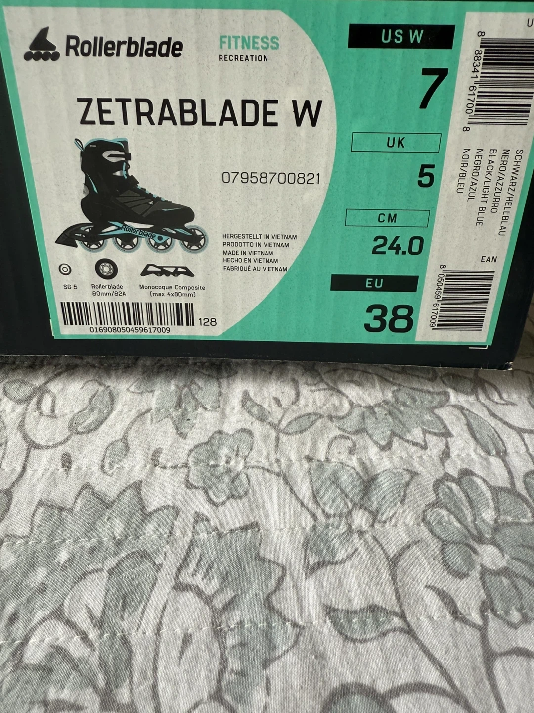 Selling a pair of Rollerblade Zetrablade W inline skates for women. These are a US size 7, UK size 5, EU size 38, and 24.0 CM. They come with the original box!