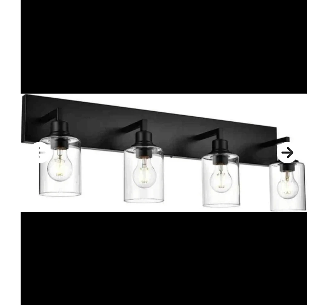 - This VINLUZ 4-light farmhouse vanity light adds a modern rustic touch to any bathroom, kitchen, or hallway. It features a durable metal base with a sleek matte black finish and four clear glass shades that provide bright, even illumination. The open design makes bulb changes easy while enhancing the fixture’s decorative appeal. Perfect for installation over a mirror, cabinet, or sink area, this wall-mounted light is versatile, stylish, and suitable for a variety of home décor styles. Ideal for upgrading your vanity lighting with a clean, contemporary look.