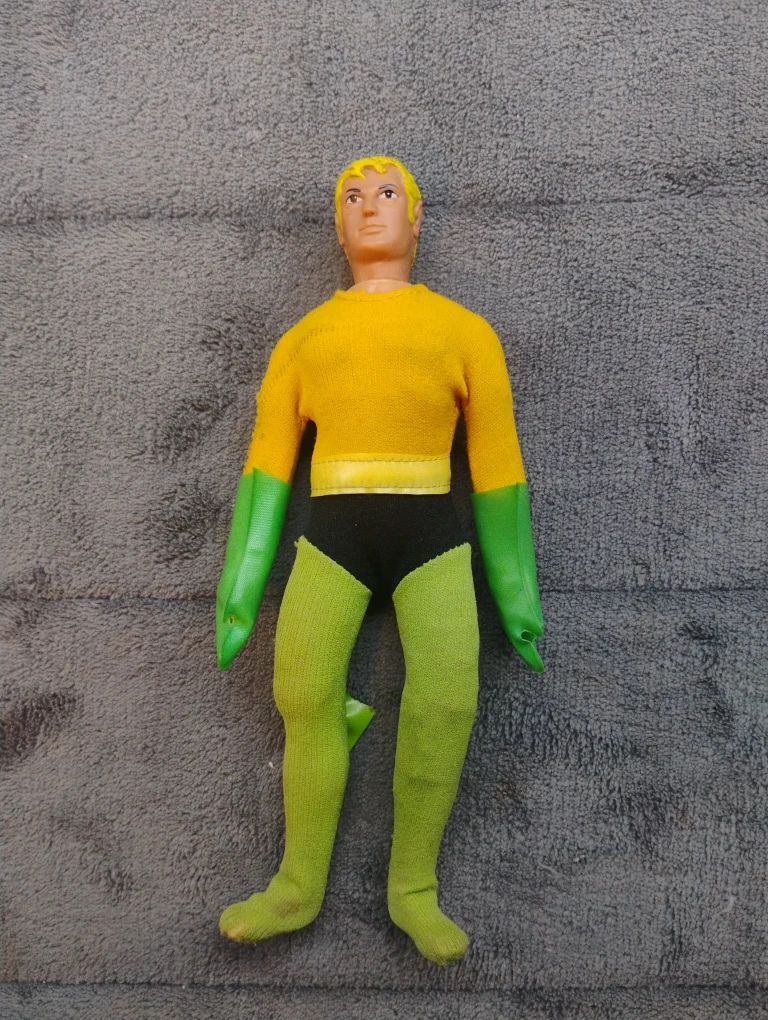 Selling a vintage MEGO Aquaman action figure from 1974! This classic toy has a unique charm and is a great addition to any collection. It shows some signs of wear consistent with its age, but it's in overall good condition for a vintage item. Don't miss out on owning a piece of toy history