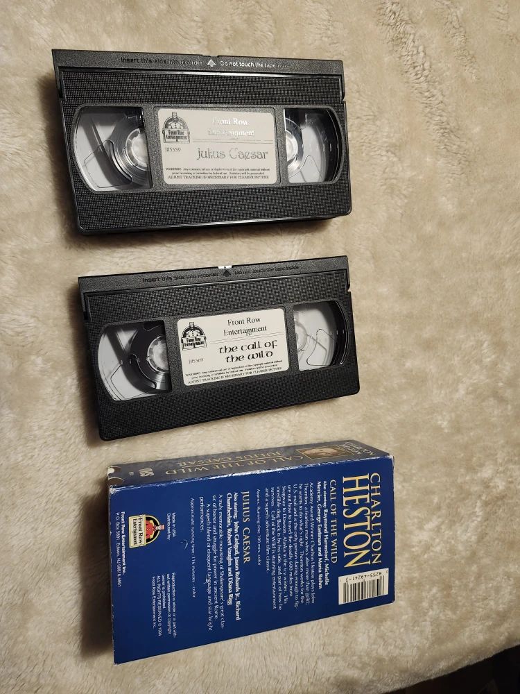 Selling a double feature VHS set featuring Charlton Heston in Call of the Wild and Julius Caesar! Both tapes are in great condition and ready to play. Perfect for a movie night or adding to your collection